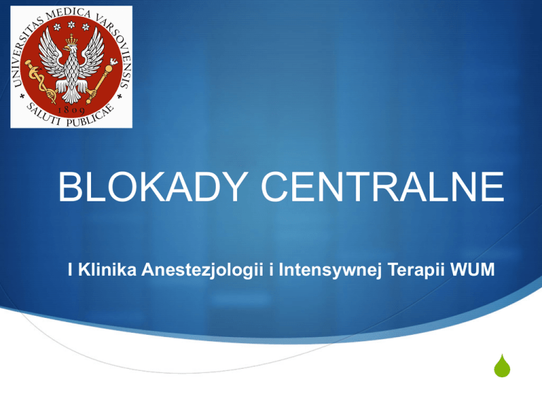 BLOKADY CENTRALNE I Klinika Anestezjologii i Intensywnej Terapii WUM S Blokady centralne Część anestezji regionalnej obejmująca metody bezpośredniego znieczulenia rdzenia kręgowego i korzeni nerwów rdzeniowych. § Znieczulenie podpajęczynówkowe § Znieczulenie zewnątrzoponowe § CSE – połączone znieczulenie podpajęczynówkowe i zewnątrzoponowe Anatomia kręgosłupa a blokady centralne 1) Fizjologiczne krzywizny q Utrudniają dostęp do przestrzeni podpajęczynówkowej i zewnątrzoponowej. (odpowiednie ułożenie pacjenta powoduje wyrównanie krzywizn). q Wpływają na rozprzestrzenianie się środków miejscowo znieczulających. W ułożeniu na placach najwyższe punkty to L3 i C5 a najniższe Th5 i S2. 2) q Przebieg wyrostków kolczystych W odcinku lędźwiowym wyrostki kolczyste przebiegają prawie poziomo a w odcinku piersiowym dachówkowato. Zawartość kanału kręgowego S Rdzeń kręgowy S Płyn mózgowo-rdzeniowy S Opony rdzenia kręgowego : miękka, pajęczynówkowa i twarda S Korzenie nerwów rdzeniowych S Przestrzeń zewnątrzoponowa z elementami strukturalnymi Przestrzeń zewnątrzoponowa S Leży w kanale kręgowym między oponą twardą rdzenia kręgowego oraz kośćmi i ścianami kanału rdzeniowego. S Rozciąga się od otworu potylicznego wielkiego u podstawy czaszki w dół do więzadła krzyżowoguzicznego, znajdującego się między kością guziczną a kością krzyżową. Szerokość przestrzeni z.o. S odcinek lędźwiowy ok. 5-6 mm S odcinek piersiowy 3-5 mm S odcinek szyjny ok. 3 mm Struktury pokonywane podczas wykonywania znieczulenia Skóra Więzadło żółte Opona twarda Opona pajęcza owe Przestrzeń zewnątrzoponowa nówk Więzadło międzykolcowe jęczy Więzadło nadkolcowe podpa Tkanka podskórna Rdzeń kręgowy S Ma długość ok 45cm S U większości Europejczyków stożek rdzeniowy kończący rdzeń kręgowy znajduje się na granicy L1-L2 punkcja przestrzeni podpajęczynówkowej nie powinna być wykonywana wyżej niż na poziomie L3/L4 Dermatomy rdzeniowe q Każdemu segmentowi rdzeniowemu odpowiada określony obszar skóry unerwiony czuciowo poprzez odpowiednie nerwy rdzeniowe. q Znajomość dermatomów jest konieczna do określenia zakresu znieczulenia q Należy pamiętać, że narządy i mięśnie leżące na wysokości dermatomów są często unerwione przez zupełnie inne nerwy Fizjologiczne następstwa blokady centralnej Układ krążenia Blokada przedzwojowych włókien współczulnych prowadzi do: - rozszerzenia tętnic oraz żył obniżenie ciśnienia tętniczego, zmniejszenie powrotu żylnego, względna hipowolemia, spadek rzutu minutowego serca - zwolnienia rytmu serca (è asystolia) zablokowanie nn. accelerantes ( Th 1 - Th 4 ), zmniejszenie powrotu żylnego MŁ Fizjologiczne następstwa blokady centralnej Układ oddechowy Blokada ruchowa rdzeniowych nerwów piersiowych - zmniejszenie pojemności życiowej płuc ( VC; ~ 20 %) - zmniejszenie wydechowej objętości zapasowej (ERV) - zmniejszenie efektywności kaszlu Wrażenie duszności może być spowodowane upośledzeniem ruchomości mięśni brzucha. Ryzyko niewydolności oddechowej - wysoki blok (C3 – C5) z MŁ upośledzeniem ruchomości przepony. Układ pokarmowy Blokada przedzwojowych włókien współczulnych - Przewaga aktywności nerwu błędnego - Wzmożona perystaltyka i napięcie mięśniówki gładkiej - Możliwość nudności i wymiotów MŁ Inne: Blokada przywspółczulnych segmentów krzyżowych S2 – S4 - atonia wypieracza pęcherza moczowego - zachowanie napięcia zwieracza cewki moczowej - zwiotczenie zwieracza odbytu - blokada nn. erigentes (penis wiotki i wypełniony krwią ) Fizjologiczne następstwa blokady centralnej Układ wewnątrzwydzielniczy: metabolizm u Hamowanie większości zmian endokrynologicznych i metabolicznych wywołanych zabiegiem chirurgicznym u Stabilizacja poziomu: - Katecholamin - Kortyzolu - ADH - Hormonu wzrostu - Glukozy MŁ Wskazania do wykonania blokady centralnej S znieczulenie do zabiegów operacyjnych S zmniejszenie bólu w porodzie siłami natury S analgezja pooperacyjna (cewnik z.o.) S rehabilitacja pooperacyjna S analgezja pourazowa (np. ciągłe znieczulenie piersiowe w złamaniach żeber) Wskazania do wykonania blokady centralnej S analgezja u chorych w OIT ( np. OZT ) S długotrwała analgezja opioidami np. nowotworach S diagnostyka przewlekłego bólu S neurolityczne zewnątrzoponowe blokady nerwów Przeciwwskazania do blokad centralnych Bezwzględne: - - - - - Brak świadomej zgody pacjenta Hipowolemia, wstrząs Zaburzenia krzepnięcia Zakażenie tkanek w miejscu wkłucia, sepsa Wady serca z zawężeniem drogi odpływu Przeciwwskazania do blokad centralnych Względne - Brak współpracy pacjenta - Schorzenia neurologiczne - Stan po operacji kręgosłupa, znaczne zniekształcenia kręgosłupa Różnica między zo a pp PP ZO Pozycja pacjenta Na siedząco/na boku Na siedząco/na boku Odcinek kręgosłupa Tylko lędźwiowy Lędźwiowy, piersiowy, szyjny (b. rzadko) *wyjątki - kazuistyka cewnik Bardzo rzadko Bardzo często Początek działania Szybki Wolny – 15-20’ Możliwość uniknięcia blokady motorycznej nie tak Miejsce podania leku Przestrzeń podpajęczynówkowa Przestrzeń zewnątrzoponowa Wykonanie blokady centralnej w odcinku lędźwiowym S Zalety znieczulenia podpajęczynówkowego • łatwa technika, pewność blokady • szybki początek blokady • redukcja bezpośrednich działań niepożądanych środków miejscowo znieczulających • stabilizacja metaboliczna i endokrynna Zalety znieczulenia podpajęczynówkowego • redukcja powikłań zakrzepowo - zatorowych • redukcja śródoperacyjnej utraty krwi • bezpieczeństwo znieczulenia • zachowana świadomość pacjenta • możliwość sedacji • małe koszty MŁ Wady znieczulenia podpajęczynówkowego • możliwość trudności identyfikacyjnych - otyłość - zwyrodnienie kręgosłupa - urazy - operacje • możliwość zaskakująco niskiego lub 