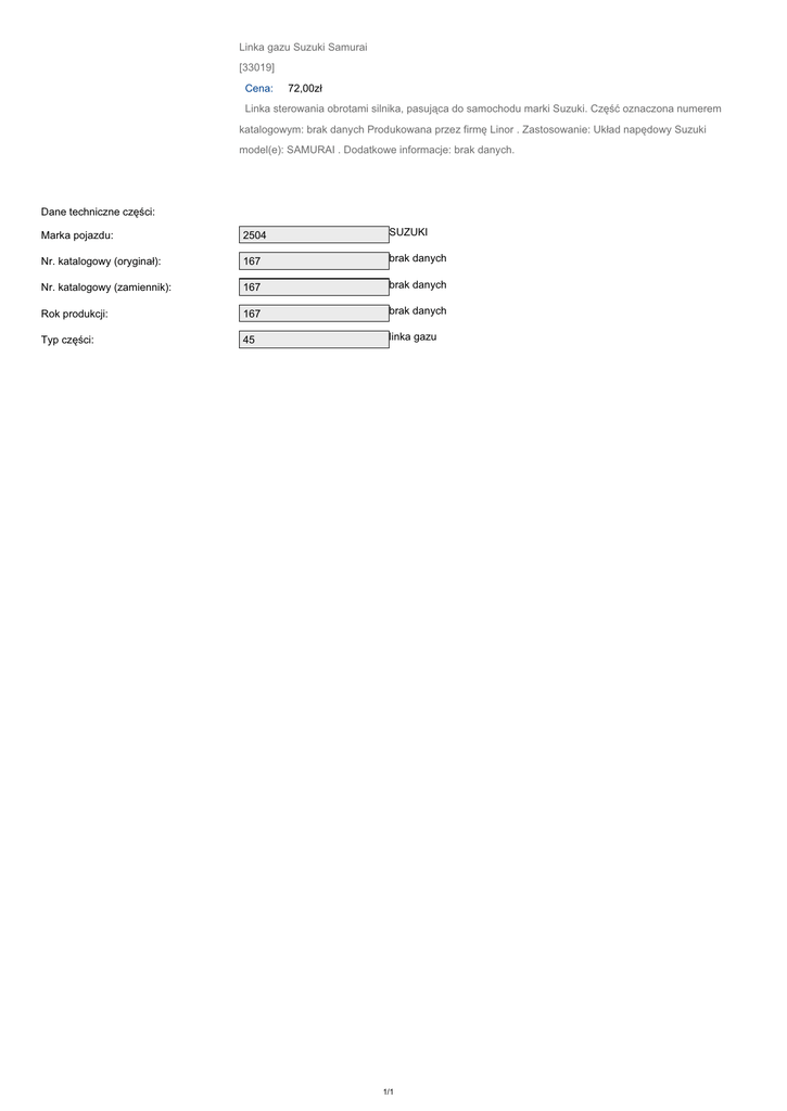 Linka gazu Suzuki Samurai [33019] Cena: 72
