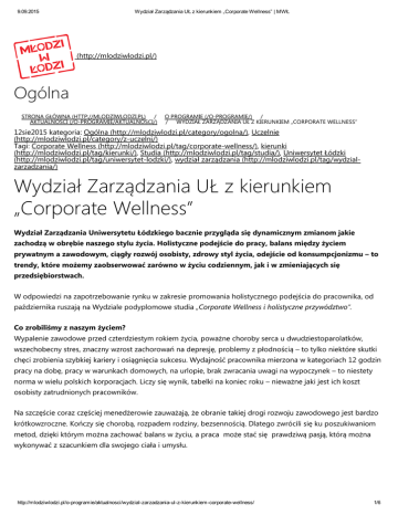 Wydział Zarządzania UŁ z kierunkiem „Corporate Wellness”