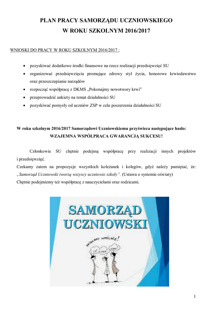 plan pracy samorządu uczniowskiego w roku szkolnym 2016/2017