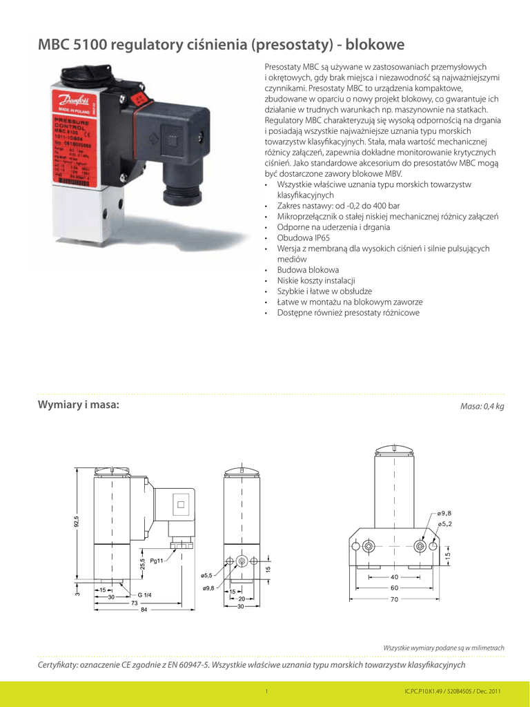 MBC 5100 regulatory ciśnienia (presostaty)