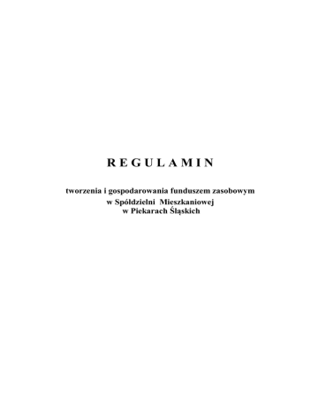 Regulamin tworzenia i gospodarowania funduszem zasobowym w