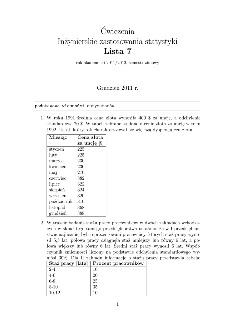 Ćwiczenia Inżynierskie zastosowania statystyki Lista 7