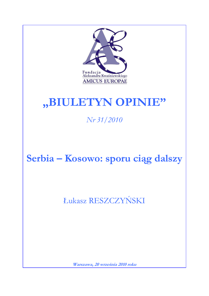 „BIULETYN OPINIE” Nr 31/2010 Serbia – Kosowo: sporu ciąg dalszy Łukasz RESZCZYŃSKI Warszawa, 20 września 2010 roku Ostatnie tygodnie pokazują, Ŝe – paradoksalnie – kwestia Kosowa wzmacnia serbskie relacje z Brukselą. Jednak sposób, w jaki to nastąpiło, z pewnością nie pozostanie bez wpływu na wewnętrzną scenę polityczną tego kraju oraz zwiększenie niechęci wobec byłej prowincji. Wraz z ogłoszoną pod koniec lipca br. doradczą opinią Międzynarodowego Trybunału Sprawiedliwości (MTS) w sprawie kosowskiej niepodległości, nasiliła się międzynarodowa presja na Belgrad1. Zaskakujący w tym aspekcie wydaje się pośpiech, jaki tuŜ po orzeczeniu zaczął cechować stanowisko państw zachodnich, głównie członków Unii Europejskiej. W percepcji Brukseli wytworzyła się bowiem idealna sytuacja, aby ostatecznie rozwiązać (wyciszyć) kwestię Kosowa oraz etnicznego konfliktu serbsko – albańskiego. Zaskakująca okazała się jednak inicjatywa Belgradu, który przedłoŜył Zgromadzeniu Ogólnemu Narodów Zjednoczony projekt specjalnej rezolucji, której ogólny sens zamykał się w stwierdzeniu, Ŝe jednostronna deklaracja niepodległości nie powinna być sposobem rozwiązywania sporów terytorialnych. Projekt nawoływał jednocześnie do dialogu, którego efektem miało być rozwiązanie spornej kwestii zadowalające obie strony2. Rezolucja, której ewentualne przyjęcie w pierwotnej formie przez Zgromadzenie podwaŜałoby zarówno opinię MTS jak i istnienie niepodległego Kosowa, była wyraźnie nie w smak państwom zachodnim. W zawiązku z tym, Stany Zjednoczone, Niemcy i Wielką Brytania podjęły dyplomatyczną ofensywę, która miała na celu „dyplomatyczną pacyfikację” Serbów oraz nakłonienie ich do wycofania projektu, lub wykreślenia zeń kontrowersyjnych stwierdzeń. Pomijając szereg działań nieoficjalnych, najwaŜniejszym przejawem zachodniej presji wobec Belgradu były sierpniowe wizyty w Serbii: najpierw szefa niemieckiej dyplomacji Guido Westervelle, a w kilka dni później jego brytyjskiego odpowiednika – Wiliama Hague’a. O ile wizytę szefa brytyjskiej dyplomacji moŜna odczytywać jako „dopełnienie” dyplomatycznej ofensywy Brukseli wobec Serbii, o tyle wizyta niemieckiego ministra nie pozostawiła wątpliwości, co do powagi całej sytuacji. Niemcy pozostają jednym z najsilniejszych gospodarczo i politycznie członków Unii Europejskiej, mając duŜy udział równieŜ w gospodarce serbskiej. Narzędzia politycznego nacisku, z jakimi do Belgradu przybył Westervelle, musiały zatem odnieść poŜądany skutek. W całej grze najistotniejszym czynnikiem wciąŜ pozostaje przyszła akcesja Serbii do Unii Europejskiej, co skutecznie zmiękczyło Belgrad w dyplomatycznej batalii o Kosowo. 1 Opinia mająca charakter doradczy została zaprezentowana 22 lutego 2010 roku. Całość uzasadnienia MTS <http://www.icj-cij.org/homepage/pdf/20100722_KOS.pdf> 2 Pełny tekst pierwotnego projektu serbskiej rezolucji <http://www.rts.rs/page/stories/sr/story/9/Srbija/743742/Srpska+rezolucija+stigla+u+UN.html> (25.08.2010) 2 Niezręczna rezolucja Opinia MTS`u wyraźnie zaskoczyła władze w Belgradzie. Serbia, która toczyła do tej pory niezwykle intensywną i skuteczną kampanię dyplomatyczną przeciwko uznaniu Kosowa, była mocno przekonana o swojej racji. „Polityczny romantyzm” serbskich polityków przysłonił im jednak prawdziwe realia rządzące stosunkami międzynarodowymi. Trudno było się spodziewać, aby sąd zlokalizowany w Hadze (aczkolwiek jak najbardziej niezawisły) wydał opinię, która podwaŜałaby ponad dziesięcioletnie działania państw zachodnich w Kosowie. Problemem okazała się równieŜ konstrukcja pytania sformułowanego we wniosku. Nie potrzeba międzynarodowego trybunału, aby odpowiedzieć, Ŝe faktycznie nie istnieje w prawie międzynarodowym zapis zakazujący ogłaszania niepodległościowych deklaracji. Serbowie wyraźnie przecenili chęć uczestniczenia w sporze haskich sędziów, którzy konkretną odpowiedzią zrezygnowali z głębszej interpretacji problemu. Nadinterpretacji nie zabrakło jednak w postawie państw zachodnich, które niemal z marszu rozpoczęły gorączkowe „porządkowanie” kwestii kosowskiej. Chęć nakłonienia Serbów do ostatecznego pogodzenia się z losem, jak równieŜ bagatelizowanie złoŜoności problemu Kosowa i jego statusu, to podstawowe wyznaczniki, jakimi określić moŜna działania w tej kwestii państw zachodnich. Nieoficjalne informacje mówią o szczególnie intensywnych działaniach Stanów Zjednoczonych, które są największym propagatorem kosowskiej niepodległości. Mimo, iŜ Waszyngton wyraźnie wycofuje swoje zainteresowanie ze Starego Kontynentu (w tym równieŜ z Bałkanów), jego interesy w Kosowie są nadal wciąŜ istotne. Chodzi tu przede wszystkim o niezwykłą sympatię, jaką dzięki nalotom na Serbię w 1999 roku Amerykanie zaskarbili sobie wśród kosowskich Albańczyków. Zebrany w ten sposób kapitał stwarza Stanom Zjednoczonym wręcz nieograniczone moŜliwości oddziaływania politycznego w tym regionie. Pamiętać naleŜy równieŜ o funkcjonującej niedaleko Prištiny potęŜnej bazie wojskowej Camp Bondsteel, pozostającej jednym z największym tego typu amerykańskich obiektów na świecie3. Nie dziwi równieŜ zaangaŜowanie w tej kwestii Unii Europejskiej, dla której Kosowo pozostaje jednym z najbardziej prestiŜowych zadań od początku jej funkcjonowania. Wizytę szefa niemieckiej dyplomacji w Belgradzie (26.08.2010) naleŜy zatem odczytywać jako próbę „dyplomatycznego spacyfikowania” Serbii. Guido Westerwelle dał wyraźnie do zrozumienia, Ŝe serbski projekt rezolucji był działaniem niemile widzianym przez państwa unijne, zaś dbająca o swoją przyszłość Serbia powinna pogodzić się z utratą swojej historycznej prowincji. Choć wizyta niemieckiego szefa dyplomacji zaplanowana była duŜo wcześniej, to 