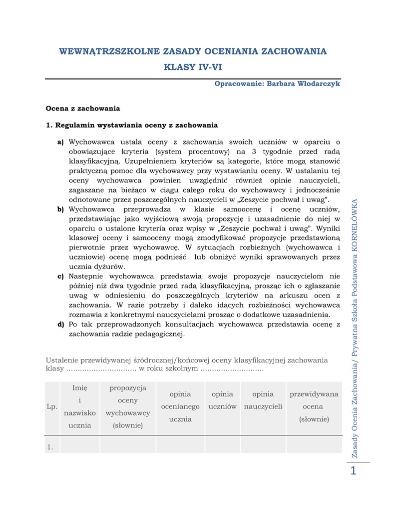 wewnątrzszkolne zasady oceniania zachowania klasy