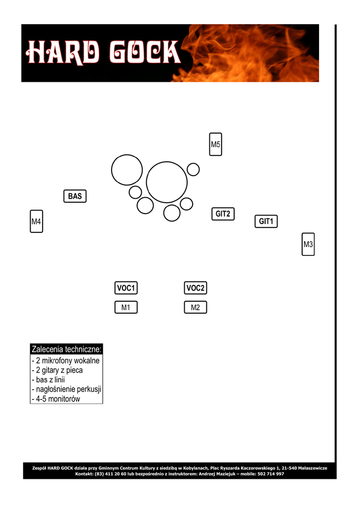 Zespół HARD GOCK działa przy Gminnym Centrum Kultury z siedzibą w Kobylanach, Plac Ryszarda Kaczorowskiego 1, 21-540 Małaszewicze Kontakt: (83) 411 20 60 lub bezpośrednio z instruktorem: Andrzej Maziejuk – mobile: 502 714 997