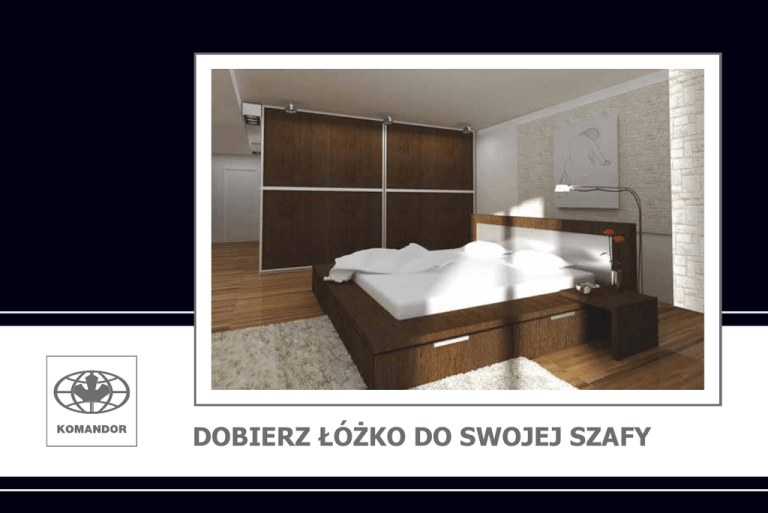 DOBIERZ ŁÓŻKO DO SWOJEJ SZAFY SZANOWNI KLIENCI Firma Komandor obchodzi 16-lecie swojego istnienia, osiągając sukces na rynku zabudów z drzwiami przesuwanymi. Dotychczasowa działalność, uhonorowana wieloma sukcesami i pozytywną opinią klientów jak również szereg inwestycji poczynionych w zakładach produkcyjnych zachęca nas do stworzenia nowych linii meblowych. W niniejszym materiale przedstawiamy projekty ŁÓŻEK uzupełniające ofertę naszej firmy w zakresie aranżacji sypialni. Powstał on na podstawie opinii naszych klientów, korzystających z oferty szaf a wymagających indywidualnych aranżacji całych pomieszczeń w tym przypadku SYPIALNI. Pomimo braku ujednoliconej oferty, nasza firma ma za sobą już wiele indywidualnych realizacji, które są efektem zapotrzebowania na rynku. 2 Zapraszamy do tworzenia własnych projektów mebli. Bogata kolorystyka płyt meblowych (ponad 30 kolorów) w połączeniu z możliwością uzupełniania mebli szkłem, rattanem, materiałami skóropodobnymi oraz modyfikacjami grubości płyty owocuje niespotykanym bogactwem możliwości. Prezentowane projekty łóżek są jedynie przygotowaną dla Państwa propozycją. Wszelkie zmiany kolorystyki, wymiary, materiały mogą być modyfikowane tak aby spełniały oczekiwania i potrzeby klienta. dobierz łóżko do swojej szafy Firma Komandor otrzymała nagrodę konsumentów Laur Konsumenta oraz została Dobroczyńcą roku 2006. Stale wspieramy nauczanie przedsiębiorczości w gimnazjach w całej Polsce. 4 Zebrano ciemne Materac: 1600x2000 Wymiary zewnętrzne: 1680x2075x300 Zagłowie: 1680x735 Zagłowie skóropodobne Szafki boczne: 500x300x300 Grubość płyty: 36mm 5 Jabłoń locarno ciemna Materac: 1600x2000 Wymiary zewnętrzne: 1660x2260x300 Zagłowie: 1660x900 Grubość płyty: 28 mm 6 Czarne Materac: 1600x2000 Wymiary zewnętrzne: 1900x2300x300 Zagłowie: 600x780 - 2szt. Grubość płyty: 36 mm. 7 Zebrano afrykańskie Materac: 1600x2000 Wymiary zewnętrzne: 1900x2180x300 Zagłowie: 2700x900 Zagłówki skóropodobne do wyboru Szafki nocne z szufladami: 400x300x300 Grubość płyty: 36 mm, 28mm 9 Orzech ciemny Materac: 1600x2000x200 Wymiary zewnętrzne: 1900x2180x340 Zagłowie z profilami aluminiowymi: 2900x700 Szafki nocne z aluminiowym uchwytem krawędziowym: 450x300x400 Grubość płyty: 36 mm, 28 mm, 18mm Podnóżek: 1300x350x200 10 Wenge Materac: 1600x2000 Wymiary zewnętrzne: 1900x2150x300 Szafki nocne z szufladami: 550x330x550 Grubość płyty: 36 mm, 28 mm, 18mm 11 Trawa morska Materac: 1600x2000 Wymiary zewnętrzne: 1660x2060x300 Zagłowie: 1660x800 Szafki nocne na kółkach uchwyt wpuszczany: 400x300x450 Grubość płyty: 28 mm, 18mm 12 Klon Materac: 1600x2000 Wymiary zewnętrzne: 1680x2075x300 Zagłowie z wypełnieniem lacobel: 1680x900 Szafki nocne z systemem push open: 600x300x300 Grubość płyty: 36 mm, 28 mm, 18mm 14 Popiel Materac: 900x2000 Wymiary zewnętrzne: 1110x2140x300 Zagłowie z wypełnieniem lacobel (szkło kolorowe): 1110x700 Szafki: 400x300x300 Grubość płyty: 36 mm, 28 mm, 18mm 15 Makasar Materac: 1400x2000 Wymiary zewnętrzne: 1800x2140x250 Zagłowie - wypełnienie mata bambusowa: 1800x700 Szafki boczne: 500x300x215 Grubość płyty: 36 mm 16 Orzech Materac: 1600x2000 Wymiary zewnętrzne: 2150x1900x300 Grubość płyty: 36 mm Podnośniki gazowe Kolory płyt Biały 110 Buk bawaria Buk Czarny Dąb jasny Grusza dzika Grusza pastelowa Grusza polna Jabłoń locarno ciemna Jabłoń locarno jasna Klon Limba czekoladowa Limba jasna Mahoń togo Mahoń Makassar Olcha Orzech ciemny Orzech Orzech fenice Popiel Sosna miodowa Terra łosoś Terra niebieska Terra żółta Trawa morska Wanilia Wenge magia Wenge Wiśnia Zebrano afrykańskie Firma Komandor oferuje najwyższej jakości płyty laminowane firmy Kronopol. Płyta posiada wszelkie certyfikaty jakości i bezpieczeństwa wymagane na tego typu wyroby przez polskie prawo. 17 Kolory lacobel • • • • • • • • • • beige dark ref 1011 black classic ral 9005 blue metal ref 1435 brown dark ral 8017 green luminous ref 1164 grey metal ral 9006 orange classic ral 2001 red lominous ref 1586 white soft ral 9010 yellow pastel ref 1602 Uchwyt frezowany 18 Zagłówki skóropodobne, skóra ekologiczna kolorystyka zagłówków Kolory mat bambusowych Prezentowane w katalogu kolory i wzory materiałów mogą się różnić od faktycznych. Materiał ma charakter poglądowy i na jego podstawie nie mogą być realizowane zamówienia dla Klienta. B17 - dostępny w 7 kolorach B12 - dostępny w 7 kolorach B7 - dostępny w 7 kolorach BC - 13 BC - 15 Co modyfikujemy projektując łóżko na zamówienie? * kolor: * wymiary: * kształt łóżka: * wezgłowie: * szuflady: * nóżki: * uchwyty: * szafkę nocną: * materac: kolorystyka ponad 30 kolorów płyt meblowych dostosowane do pomieszczenia forma łóżka według wyboru Klienta kształt, wypełnienie ilość, prowadnice, uchwyty wybór różnych nóg lub cokoły z płyty relingi, uchwyty krawędziowe, frezowane uzupełnienie łóżka pełna oferta materacy wysokiej jakości firmy JANPOL Zamów bezpłatną wycenę i pomiar www.komandor.pl infolinia 0801 300 400