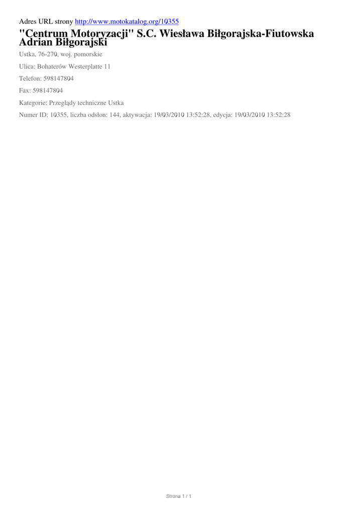 "Centrum Motoryzacji" S.C. Wieslawa Bilgorajska
