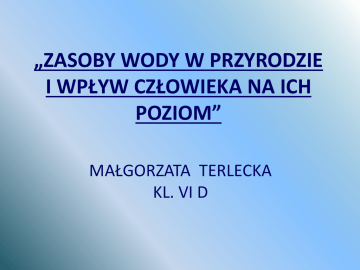 „ZASOBY WODY W PRZYRODZIE, A ICH WPŁYW NA
