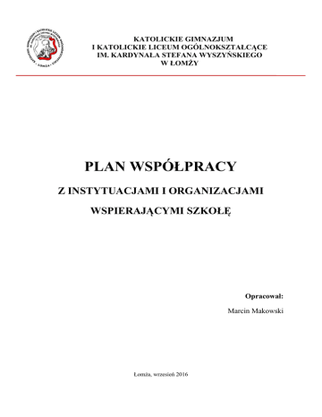 plan współpracy - Katolickie Gimnazjum i Katolickie Liceum