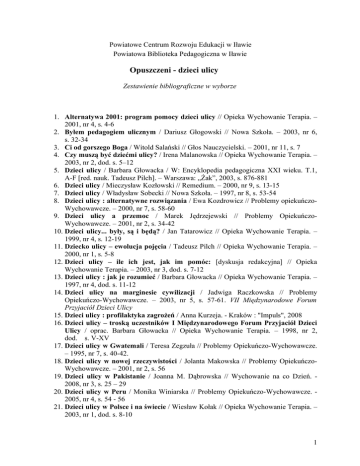 Ulicy / oprac. Barbara Głowacka // Opieka Wychowanie Terapia. – 1998, nr 2,