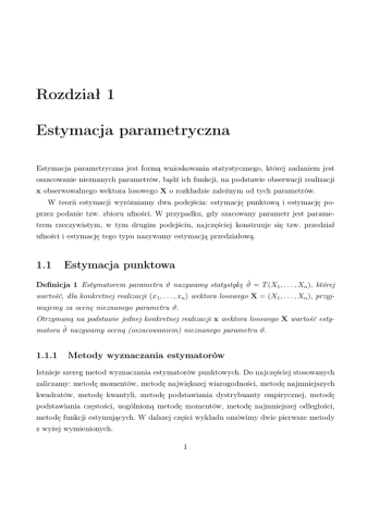 Definicja 1 Estymatorem parametru ϑ nazywamy statystykę ϑ̂ = T (X1 , . . . , Xn ), której