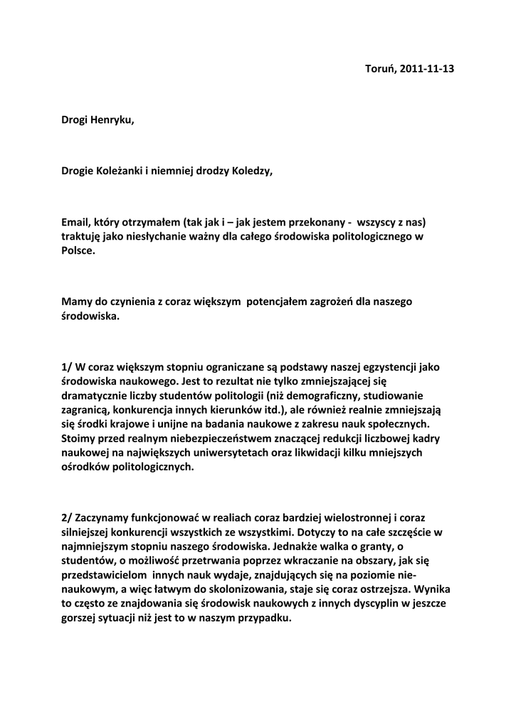 Listy dot. środowiska politologicznego