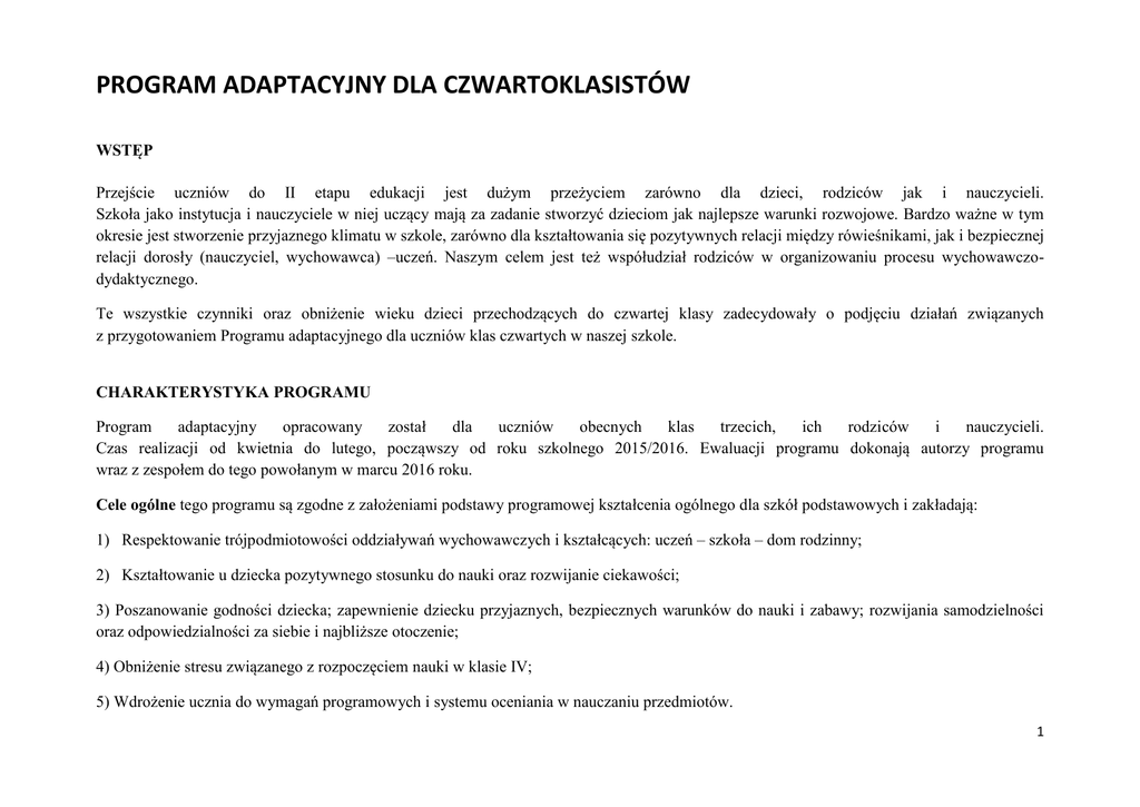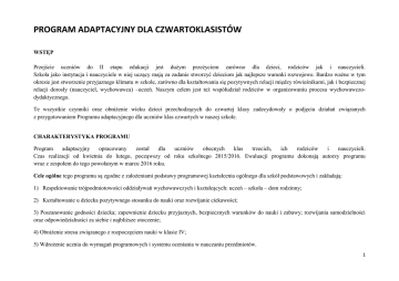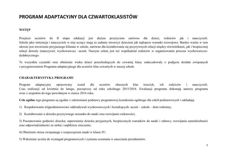 PROGRAM ADAPTACYJNY DLA CZWARTOKLASISTÓW