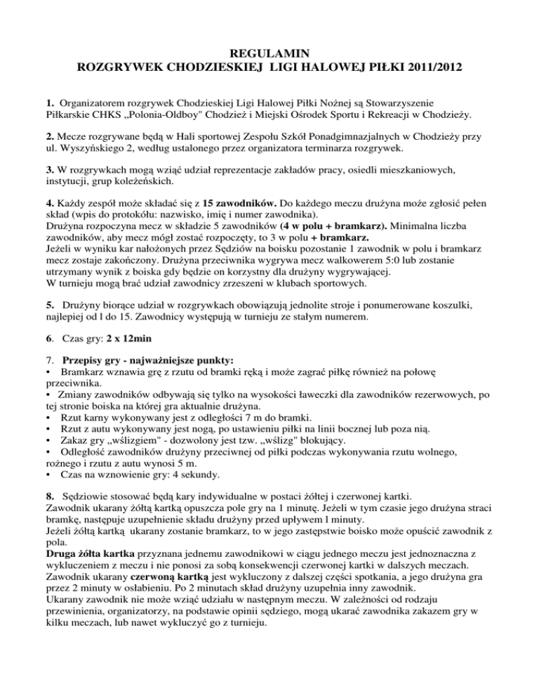 regulamin rozgrywek chodzieskiej ligi halowej piłki 2011/2012