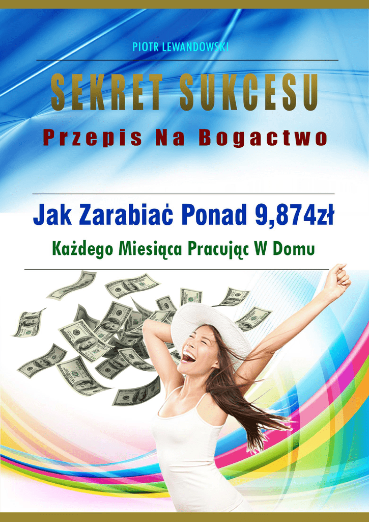 Bestseller 2016 Piotr Lewandowski: “Sekret Sukcesu – Przepis Na Bogactwo” 0 Piotr Lewandowski: “Sekret Sukcesu – Przepis Na Bogactwo” Zamiast Wstępu Coś skłoniło Cię do pobrania tego e-booka i chcesz go przeczytać do końca. To dobrze, bo aby w pełni zrozumieć to, co mam Ci do przekazania, ważne jest abyś przynajmniej raz z uwagą przeczytał lub przeczytała tego e-booka w całości, od początku do końca, nie pomijając żadnej jego części. Czytanie pobieżne lub częściowe nie ma sensu, bo wtedy nie odniesiesz z niego żadnej korzyści. Dlatego usiądź sobie wygodnie, skup się i poświęć te kilkanaście minut na przeczytanie tego materiału, który pozwoli Ci spojrzeć na kilka ważnych spraw w zupełnie innym świetle. Również Ty możesz osiągnąć wymarzony sukces i niezależność finansową, ludzie po przejściach, po złych doświadczeniach są ustosunkowani sceptycznie i obojętnie do innowacji i uniezależnienia się od systemu. Każdy powinien mieć swój cel, do którego będzie dążył , czasami poświęcając swój czas, spotkania ze znajomymi, wyjście do baru. Samozaparcie w jego osiągnięciu to pierwsza rzecz, którą każdy powinien w sobie wyrobić. Ta książka ma Ci pomóc w osiągnięciu celu jakim jest niezależność od podwładnych, szefów i tzw. „mafii rządzącej”. Płacisz podatki jak każdy inny, ciężko pracujesz, nie masz czasu, nadzieja odeszła w zapomnienie, a przed Tobą pustka i nicość. Czy tak właśnie się czujesz? W tym bezdusznym społeczeństwie na pewno tak, tak jak ja i inni moi znajomi tak się czułeś, dopóki nie znaleźliśmy metody na usamodzielnienie się. Bestseller 2016 Teraz płacimy podatki, ale nie pracujemy ciężko, mamy czas dla rodzin, a przyszłość stoi otworem i marzenia się właśnie spełniają. Ten e-book nie jest napisany dla zysku, lecz z wolnego czasu, którego mi nie brakuje. Pracuje po 2, maksymalnie 3 godziny dziennie. Opalam się w moim domu w południowej Portugalii, wstaje o 10.00 rano, sprawdzam swoje konto i dalej się kładę na godzinkę, dopóki mnie żona nie obudzi całusem i przyniesie śniadanie do łóżka. Wiem, może pomyślisz, że to staroświeckie, ale wraz z żoną cieszymy się pięknem każdego poranka na naszej werandzie, otoczeni laskiem, spoglądając na ocean, a ta piękna kobieta jest iskierką zapalną dla, której jestem w stanie przenosić góry i zarabiać miliony. Dlatego, że mam mnóstwo czasu dla siebie i rodziny, chciałem zrobić coś dla innych, podzielić się swoimi przemyśleniami i oddać w Twoje ręce moją receptę na Sukces. 1 Piotr Lewandowski: “Sekret Sukcesu – Przepis Na Bogactwo” Zapytasz dlaczego, po co mi to? Robię to ponieważ jak wspomniałem, mam mnóstwo czasu, z którym nie wiem co zrobić, dlatego wpadłem na pomysł aby pomóc innym, którzy mi zaufają i chcą żyć wygodnie i bogato tak jak ja. Mogę świadomie podzielić się z Tobą receptą na Sukces i oddać zupełnie za darmo proste metody zarabiania pieniędzy w domu. Twoje życie, Twoja przyszłość leży w Twoich rękach i tylko Twoich. Nie próbując, nie angażując się, bez celu, będziesz żyć jak 97% społeczeństwa, które narzeka i obwinia wszystko i wszystkich za swoje niepowodzenia. Wszystko co zawarte jest w tej elektronicznej książce jest prawdziwe i wydarzyło się naprawdę. Wszystkie metody zarabiania pieniędzy, wskazówki i przykłady, mogą jedynie wznieść Ciebie ponad całe to zabiegane społeczeństwo. Jeżeli masz otwarty umysł, masz cel – możesz uwolnić się od panującego zewsząd wyzysku, żyć pełnią życia, mieć czas dla najbliższych – to w niedługim czasie na pewno go osiągniesz, wystarczy, że dostosujesz się do moich wskazówek – jak zarabiać każdego miesiąca minimum 10.000zł. To nie żart i żadne naciąganie. Masz teraz wielką szansę, szansę, którą albo wykorzystasz i zdobędziesz szczyty Sukcesu, albo dalej będziesz tkwił w miejscu, bez celu, perspektyw i przyszłości. Przeczytaj tego e-booka od początku do końca, przemyśl moją propozycję i dokonaj wyboru, a wybór jest tylko jeden i powinieneś odpowiedzieć teraz: TAK, JESTEM NA TAK I BĘDĘ SZCZĘŚLIWY, MAM CEL I PRZYSZŁOŚĆ NALEŻY DO MNIE! Więc zaczynamy! Od teraz zaczyna się nowy rozdział w Twoim życiu, BĘDZIESZ BOGATYM człowiekiem. Przeczytaj uważnie wers za wersem i zacznij zarabiać prawdziwe pieniądze. Pieniądze szczęścia nie dają, ale dają wolność psychiczną od rachunków, kredytów i niezaplanowanych wydatków. Bestseller 2016 No to do dzieła, zostań BOGATYM I SZCZĘŚLIWYM CZŁOWIEKIEM! 2 Piotr Lewandowski: “Sekret Sukcesu – Przepis Na Bogactwo” „Bogać się. Bogać się szybko. Bogać się Nadmiernie” Mark Twain Witam Cię serdecznie. Cieszę się, ze zainteresował Cię mój e-book i dziękuję Ci, że go czytasz, bo to znaczy, że moja praca pisarska nie poszła na marne tym bardziej, że bardzo starałem się, aby ten e-book był przede wszystkim przydatny i żeby pomógł Ci w przemyśleniu sobie kilku istotnych spraw związanych z finansami. Istnieją dwa powody, dla których napisałem tego ebooka. Po pierwsze mam mnóstwo wolnego czasu i obserwuję bardzo dziwne rzeczy w sensie ekonomicznym, ponieważ z każdej strony straszy się nas kryzysem i coraz gorszą sytuacją gospodarczą, ale jednak nie wszystkich sfer życia i nie wszystkich ludzi ta sytuacja dotyka jednakowo. Na przykład bogaci ludzie nie muszą obawiać się żadnych kryzysów, co innego ludzie biedni lub mało albo średnio zarabiający, ponieważ to właśnie Ci ludzie najboleśniej odczuwają wszelkie załamania gospodarcze. Uważam, że każdy pracujący człowiek powinien żyć przynajmniej na przyzwoitym poziomie i korzystać z dobrodziejstw obecnej techniki i technologii oraz innych luksusów ułatwiających i umilających życie. Tak powinno być, jednak tak nie jest. Tak powinno być, ponieważ to nie ludz