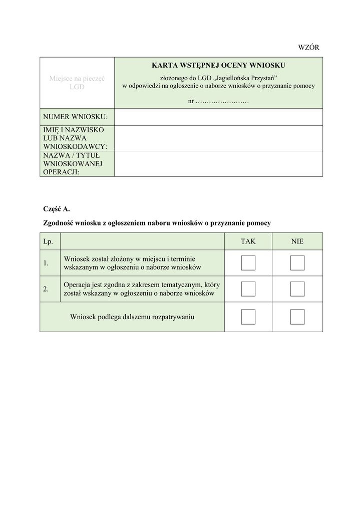 Karta wstępnej oceny wniosku
