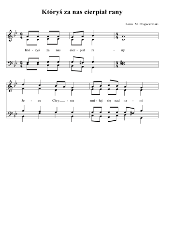 Któryś za nas cierpiał rany " Ä " 24 tt tt Å " " 24 tt tt Któ - ryś " t " Ä t Je Å " " tt tt - zu tt tt tt tt tt t t za nas cier - piał ra tt tt t !t t t t t t t t t t Chry t - ste t t - 44 A A harm. M. Pospieszalski ny 44 !AA tt tt tt tt t t zmi - łuj się nad na - tt mi tt t t tt tt !t t t t t