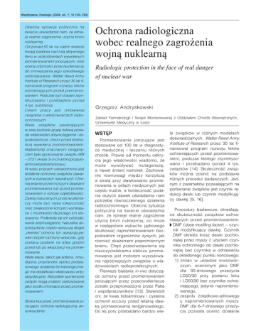 Ochrona radiologiczna wobec realnego zagro¿enia wojn¹ nuklearn¹