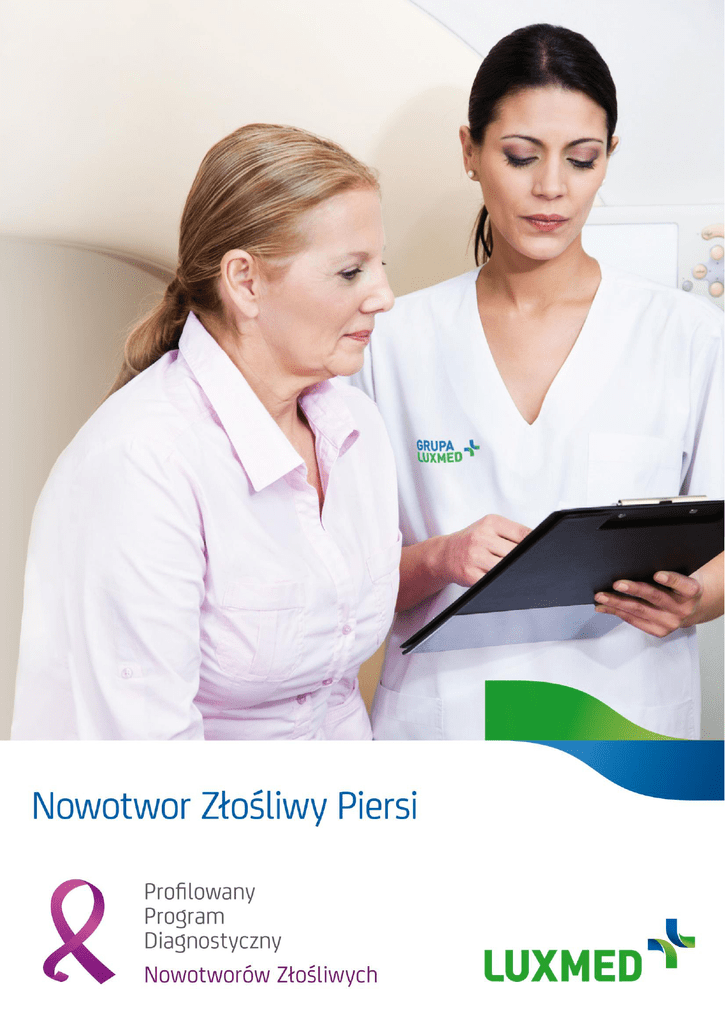 Czy wiesz, że nowotwór piersi to najczęściej występujący w Polsce nowotwór wśród kobiet? Czy wiesz, że aby zmniejszyć ryzyko zachorowań na raka piersi, niezbędna jest odpowiednia profilaktyka, szczególnie regularna samokontrola piersi i badania kontrolne? Tylko wtedy szanse na wyleczenie ewentualnego nowotworu się zwiększają. Grupa LUX MED przy współpracy z ekspertami w dziedzinie onkologii opracowała Profilowany Program Diagnostyczny Nowotworów Piersi. Do programu zostali zaproszeni następujący eksperci Grupy LUX MED: prof. dr hab. n. med. Małgorzata Tacikowska Opis rezonansu magnetycznego Autorytet w radiodiagnostyce ukierunkowanej na mammografię w MR (MR sutków). Posiada wieloletnie doświadczenie w radiodiagnostyce onkologicznej. dr n. med. Robert Chmielewski Konsultacja podsumowująca Chirurg ogólny onkolog. Wieloletni adiunkt w Klinice Nowotworów Piersi i Chirurgii Rekonstrukcyjnej w Centrum Onkologii Instytucie w Warszawie, specjalista w zakresie chirurgii piersi i tarczycy. Obecnie specjalista chirurgii onkologicznej w Mazowieckim szpitalu Onkologicznym w Wieliszewie. Screeningowe badanie sutków za pomocą rezonansu magnetycznego dla osób rodzinnie zagrożonych zwiększa prawdopodobieństwo wykrycia nowotworów złośliwych piersi we wczesnym stadium ewentualnej choroby. Jest to badanie obrazowe piersi uważane obecnie za jedną z dokładniejszych metod diagnostycznych u kobiet z predyspozycjami rodzinnymi. Etapy programu – zakres usług: badania diagnostyczne rezonans magnetyczny sutków – badanie screeningowe + kontrast (kontrast wliczony w cenę Programu)*, konsultacja chirurga onkologa podsumowująca MR z omówieniem wyników i wydaniem zaleceń na przyszłość, usługa Doradcy Hospitalizacyjnego w okresie 3 miesięcy od daty aktywacji pakietu, koordynacja wykonania badań i konsultacji przez Asystenta Programu. Asystent Programu dla wygody pacjenta sprawnie skoordynuje wykonanie badań diagnostycznych, oraz konsultacji lekarskich w jak najkrótszym i dogodnym dla pacjenta czasie, ograniczając liczbę wizyt w placówce do minimum. 24-godzinny dostęp do usługi Doradca Hospitalizacji – wyspecjalizowanej infolinii profesjonalistów i doradców medycznych udzielających informacji związanych z organizacją przyjęć do szpitali, zarówno w ramach świadczeń finansowanych publicznie, jak i komercyjnie, w przypadku konieczności hospitalizacji planowej. Etap programu Miejsce realizacji Badanie rezonansem magnetycznym CM AVI ul. Puławska 455 Konsultacja zamykająca CM LUX MED Al. Jerozolimskie 65/79 Szczegółowe informacje dostępne są pod numerem 22 33 93 733. Cena Profilowanego Programu Diagnostycznego Nowotworów Złośliwych Piersi to 1 300,00 zł. Szybki elektroniczny zakup programu, wraz z dokonaniem płatności przez wygodny system płatności internetowych PayU S.A, umożliwia aktywację programu i możliwość korzystania z usług już następnego dnia roboczego. *zalecane jest aby rezonans magnetyczny sutków był wykonany przed biopsją lub po upływie minimum 8 tygodni po biopsji. W przypadku podejrzenia zmiany nowotworowej, można wykonać badanie MR w terminie krótszym niż 8 tygodniu od biopsji zmiany podejrzanej, w celu oceny drugiego sutka lub/i wykluczenia innych zmian w sutku nakłuwanym.