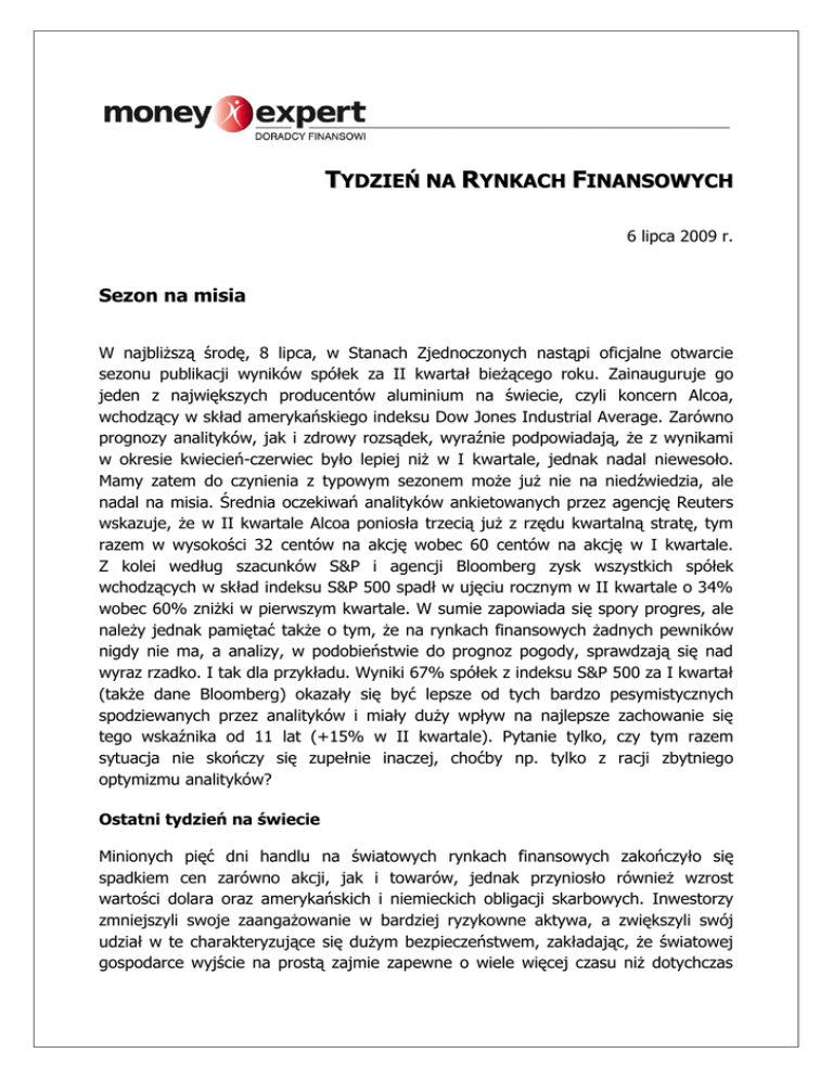 TYDZIEŃ NA RYNKACH FINANSOWYCH Sezon na misia