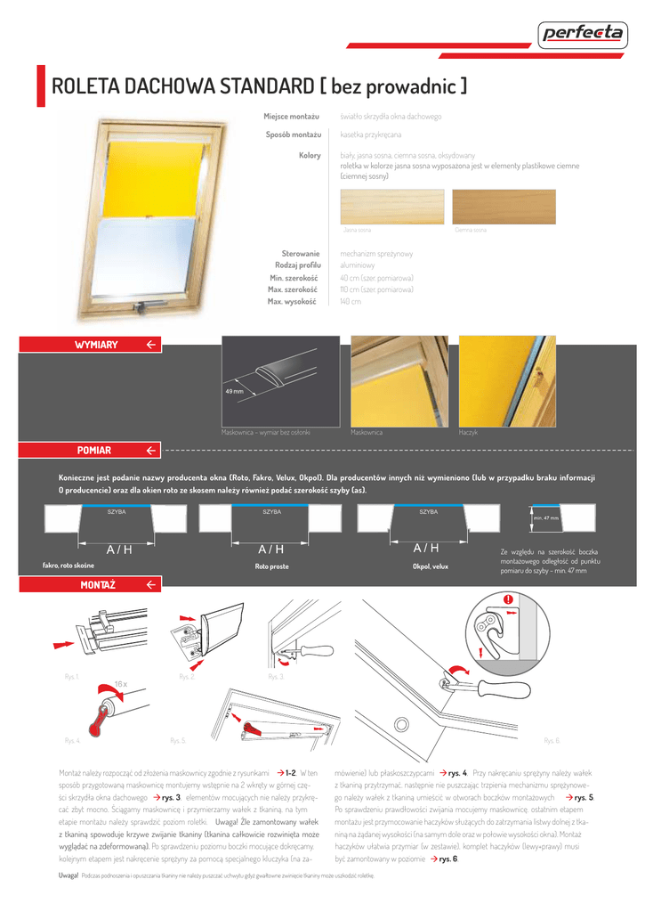 Roleta dachowa standardowa bez prowadnic instrukcja