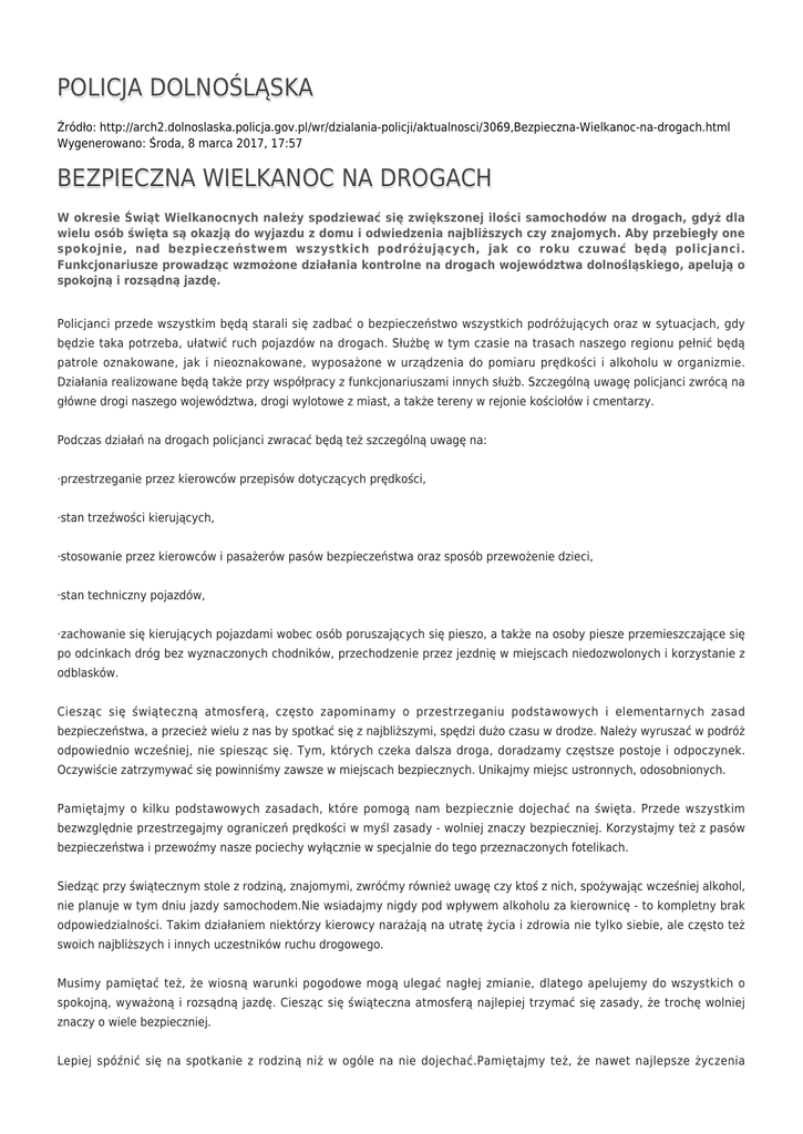 POLICJA DOLNOŚLĄSKA BEZPIECZNA WIELKANOC NA DROGACH