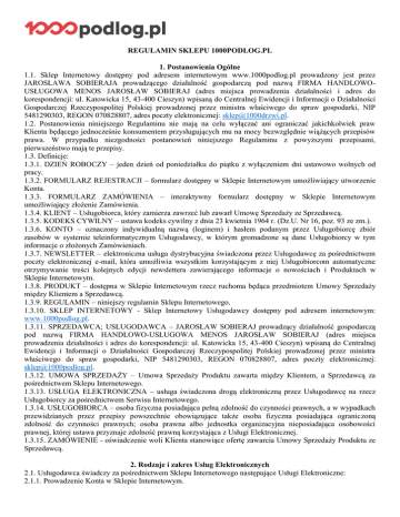 REGULAMIN SKLEPU INTERNETOWEGO 1000podlog.pl