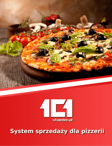 System sprzedaży dla pizzerii Nasz system to rozwiązanie, które umożliwi Ci: szybszą obsługę gości w lokalu, łatwiejszą realizację zamówień z dostawą, powiązanie z systemem zamówień on-line, zwiększenie lojalności klientów. System sprzedaży dla pizzerii sprawdzi się zarówno, jeśli: prowadzisz jedną pizzerię, jesteś właścicielem sieci pizzerii. Co zyskasz korzystając z naszego programu? efektywną kontrolę sprzedaży, dokładne i aktualne informacje o stanach magazynowych, rozbudowane analizy i raporty, porównywanie wyników każdego z pracowników, możliwość tworzenia akcji promocyjnych i rabatów. W efekcie: zwiększysz swoje zyski, uszczelnisz gospodarkę magazynową, wyeliminujesz pomyłki personelu, podniesiesz swój komfort pracy, zwiększysz wydajność personelu, zdobędziesz więcej zadowolonych klientów. 101 Sp. z o.o.. ul. Wschodnia 14, 95-083 Kazimierz tel. 42 231 6 101, e-mail: [email protected], www: dla-gastronomii.pl 2 System sprzedaży dla pizzerii Kosztorys Oprogramowanie - System gastronomiczny X2 System Start 2697 zł Moduły: stacjonarna sprzedaż mobilna sprzedaż dowozy na telefon Sprzęt 4993 zł stacjonarna sprzedaż - terminal dotykowy mobilna sprzedaż - tablet wydruk paragonów - drukarka fiskalna komunikacja z kuchnią - drukarka zamówień Kompleksowe wdrożenie 699 zł szkolenie dla właściciela / managera szkolenie dla obsługi Razem od 7690 zł Opcje dodatkowe opieka serwisowa dla pizzerii w zależności od ustaleń Nasi klienci Kontakt Jacek Jankowski tel. 536 101 101 e-mail: [email protected] Ewelina Górna e-mail: [email protected] 101 Sp. z o.o.. ul. Wschodnia 14, 95-083 Kazimierz tel. 42 231 6 101, e-mail: [email protected], www: dla-gastronomii.pl 3