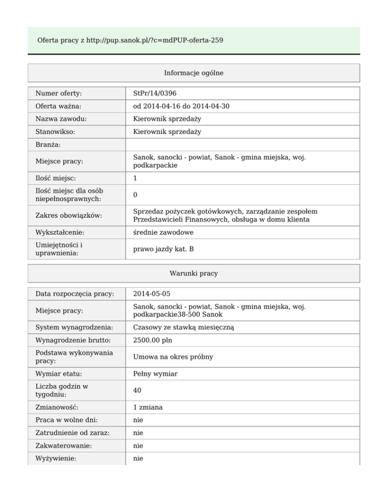 Oferta pracy z http://pup.sanok.pl/?c=mdPUP-oferta