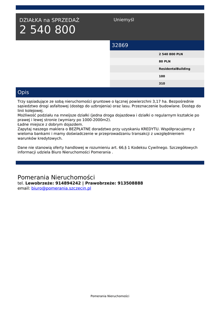 2 600 000 326 m2 - Pomerania Nieruchomości