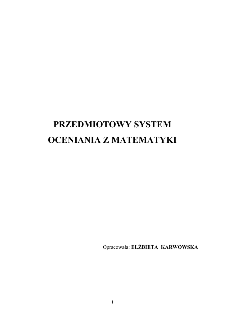 PRZEDMIOTOWY SYSTEM OCENIANIA Z MATEMATYKI Opracowała: ELŻBIETA KARWOWSKA 1 Przedmiotowy System Oceniania (PSO) jest zgodny z rozporządzeniem MEN z dnia 30.04.2007 r. w sprawie warunków i sposobu oceniania, klasyfikowania i promowania uczniów oraz przeprowadzania egzaminów w szkołach publicznych. I. Przedmiotowy System Oceniania z matematyki jest zgodny z Wewnątrzszkolnym Systemem Oceniania Gimnazjum im. Józefa Ignacego Kraszewskiego w Milanowie. II. Przedmiotowy System Oceniania określa: 1. Sposób informowania uczniów o kryteriach wymagań edukacyjnych. 2. Formę oceny bieżącej. 3. Formy aktywności podlegające ocenie. 4. Sposoby zaliczania zajęć edukacyjnych. 5. Ustalanie ocen na koniec semestru i roku szkolnego oraz warunki ich poprawy. 6. Sposoby motywowania wystawianych ocen. 7. Informowanie uczniów o terminach sprawdzianów pisemnych. 8. Procedury odwoławcze od ocen. 9. Kontrakt między nauczycielem i uczniem. III. Przedmiotowy System Oceniania zawiera kryteria wymagań edukacyjnych na poszczególne stopnie. IV. Wszystkie sprawy sporne, nie ujęte w PSO, rozstrzygane będą zgodnie z WSO oraz rozporządzeniami MEN. 2 Ad.II.1. Na początku roku szkolnego uczniowie zostaną zapoznani z zakresem materiału, celami kształcenia oraz zasadami i kryteriami oceniania. Ponadto na pierwszej lekcji rozpoczynającej nowy dział uczniowie zostaną zapoznani ze szczegółowymi wymaganiami na każdą ocenę z zakresu przerabianego materiału (szczegółowe wymagania będą wklejane do zeszytu). Ad.II.2. Uczniowie będą oceniani za pomocą cyfr od 1 do 6. Ocena jest jawna i każdorazowo wpisywana do dziennika. W semestrze uczeń powinien otrzymać nie mniej niż 5 ocen cząstkowych. Ad.II.3. Ocenie podlegają następujące formy pracy: a) prace pisemne: kartkówki (10-15 minutowe) z aktualnie omawianego materiału lub z pracy domowej; prace klasowe (45-minutowe) z opracowanego działu, zapowiedziane z tygodniowym wyprzedzeniem; testy; b) samodzielna praca na lekcji: samodzielne rozwiązywanie zadań kontrolnych; samodzielne rozwiązywanie zadań problemowych; rozwiązywanie zadań dodatkowych; c) obserwacja ucznia w czasie uczenia się: obserwacja ucznia w czasie pracy z podręcznikiem, w grupie, podczas wykonywania różnych prac; obserwacja w czasie gier dydaktycznych; nietypowe rozwiązywanie zadań; d) wypowiedzi ustne: udział w dyskusji; aktywność na lekcji; posługiwanie się językiem matematycznym; analiza zadań z treścią (rozumienie treści rozwiązywanych zadań); e) sprawdzanie i ocenianie praktycznej działalności uczniów: wykonywanie modeli figur i innych pomocy dydaktycznych; wykonywanie map i projektów; f) systematyczne rozwiązywanie prac domowych i systematyczna praca ucznia na lekcji. 3 Ad.II.4. Uczeń ma prawo do zaliczania wiadomości wówczas, gdy jego nieobecność usprawiedliwiona trwa dwa tygodnie i więcej. Ad.II.5. Ocenę na koniec semestru i koniec roku szkolnego wystawia nauczyciel przedmiotu po dokładnej analizie osiągnięć ucznia pod kątem wymagań edukacyjnych na poszczególne oceny cząstkowe. Uczeń ma prawo do poprawy oceny końcowej, gdy wynikła ona z przyczyn obiektywnych takich jak choroba. Na koniec semestru nie przewiduje się dodatkowych sprawdzianów zaliczeniowych. Ad.II.6. Nauczyciel uzasadnia ocenę słownie informując ucznia co należy zrobić aby osiągnąć lepsze wyniki. Ad.II.7. Sprawdziany wiadomości będą zapowiadane i zapisywane do dziennika na tydzień przed ich pisaniem. Oceny ze sprawdzianu będą miały decydujący wpływ na ocenę semestralną. Poprawa sprawdzianu jest dobrowolna i odbywa się w ciągu dwóch tygodni od rozdania prac w terminie ustalonym przez nauczyciela. Uczeń pisze ją tylko raz. Poprawiać można co najwyżej ocenę dopuszczającą. Punkty uzyskane przez ucznia z prac klasowych i sprawdzianów przeliczane są na stopnie według następującej skali: 90% - 100% bardzo dobry 75% - nie uzyskał 90% dobry 50% - nie uzyskał 75% dostateczny 30% - nie uzyskał 50% dopuszczający 0% - nie uzyskał 30% niedostateczny Ocenę celującą może otrzymać uczeń, który spełnia kryteria ocen na ocenę bardzo dobrą, na pracach klasowych rozwiązuje zadania dodatkowe, osiąga sukcesy w konkursach matematycznych na szczeblu pozaszkolnym. Ad.II.8. Wszelkie uwagi o wystawionej ocenie cząstkowej uczeń zgłasza do nauczyciela na przerwie po skończonej lekcji. Nauczyciel ma obowiązek rozpatrzyć odwołanie ucznia od oceny. 4 Ad.II.9. Kontrakt między nauczycielem i uczniem 1. Każdy uczeń jest oceniany sprawiedliwie. 2. Prace klasowe, sprawdziany i odpowiedzi ustne są obowiązkowe. 3. Prace klasowe są zapowiadane, z co najmniej tygodniowym wyprzedzeniem i podany jest zakres sprawdzanych wiadomości i umiejętności. 4. Krótkie sprawdziany (kartkówki) nie muszą być zapowiadane i nie mogą być poprawiane. 5. Uczeń nieobecny na pracy klasowej lub sprawdzianie musi ją napisać w terminie uzgodnionym z nauczycielem. 6. Każdą pracę klasowa, napisaną na ocenę niedostateczną lub dopuszczającą, uczeń może poprawiać. Poprawa jest dobrowolna i odbywa się w ciągu 2 tygodni od dnia podania informacji o ocenach. Uczeń poprawia pracę tylko raz. 7. Po dłuższej nieobecności w szkole (powyżej 1 tygodnia) uczeń ma prawo nie być oceniany przez dwie lekcje (nie dotyczy prac klasowych). 8. Uczeń ma prawo raz w ciągu semestru zgłosić nieprzygotowanie się do lekcji. Przez nieprzygotowanie się do lekcji rozumiemy: brak zeszytu, brak pracy domowej, niegotowość do odpowiedzi, brak pomocy potrzebnych na lekcji. 9. Aktywność na lekcji nagradzana jest „plusami”. Za 5 zgromadzonych „plusów” uczeń otrzymuje ocenę bardzo dobrą. Przez aktywność na lekcji rozumiemy: zgłaszanie się na lekcji i udzielanie poprawnych odpowiedzi, rozwiązywanie zadań dodatkowych w czasie lekcji, aktywną pracę w grupach. 10. Uczeń ma obowiązek uzupełnić i zaliczyć wiadomości, których bra