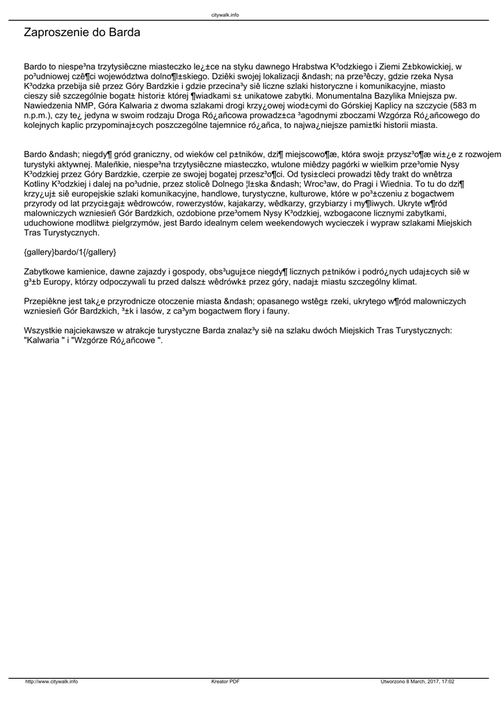 uduchowione modlitw± pielgrzymów, jest Bardo idealnym celem weekendowych wycieczek i wypraw szlakami Miejskich