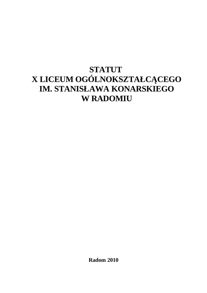 statut x liceum ogólnokształcącego im. stanisława konarskiego w
