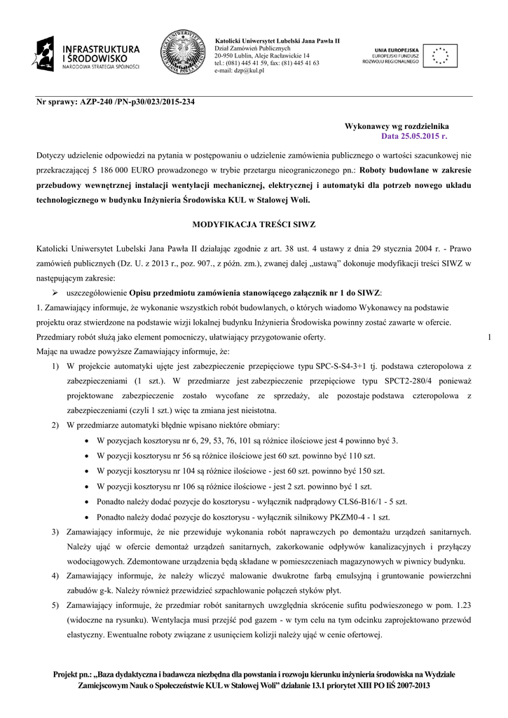 Modyfikacja SIWZ z dn. 25.05.2015 r.