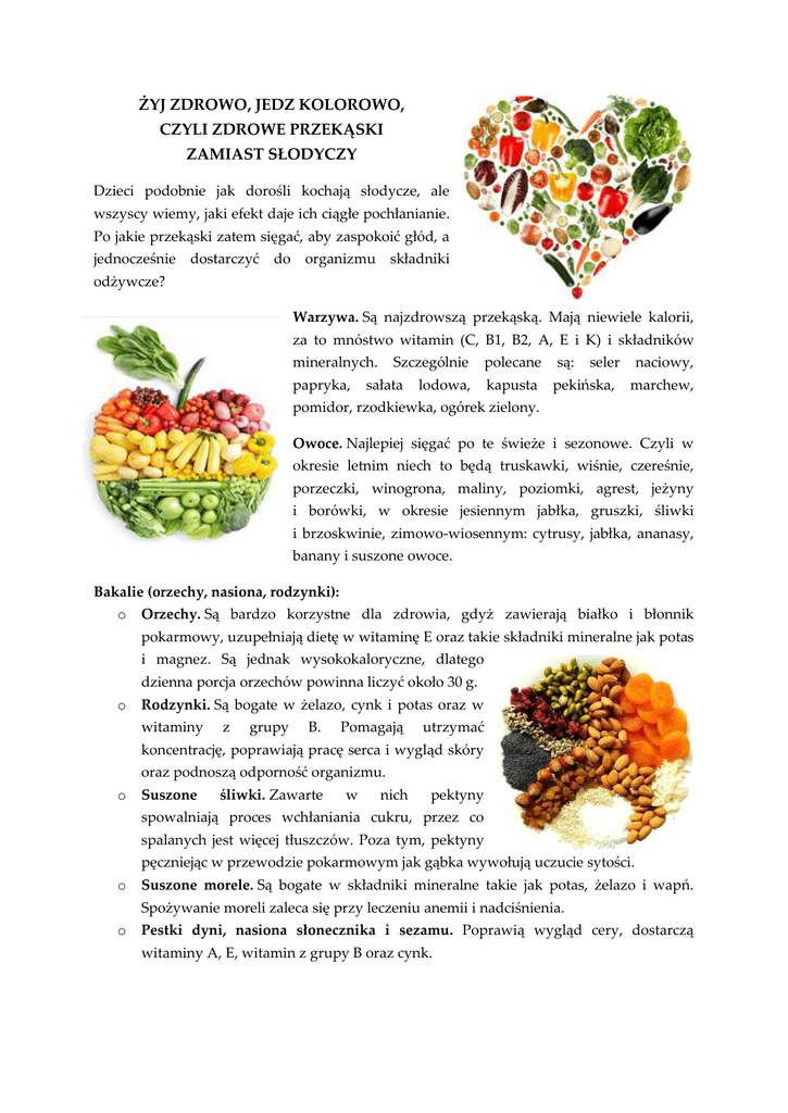 ŻYJ ZDROWO, JEDZ KOLOROWO, CZYLI ZDROWE PRZEKĄSKI