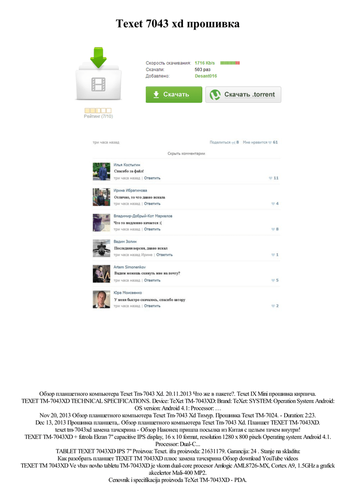 Texet 7043 xd прошивка Обзор планшетного компьютера Texet Tm-7043 Xd. 20.11.2013 Что же в пакете?. Texet IX Mini прошивка кирпича. TEXET TM-7043XD TECHNICAL SPECIFICATIONS. Device: TeXet TM-7043XD: Brand: TeXet: SYSTEM: Operation System: Android: OS version: Android 4.1: Processor: … Nov 20, 2013 Обзор планшетного компьютера Texet Tm-7043 Xd Тимур. Прошивка Texet TM-7024. - Duration: 2:23. Dec 13, 2013 Прошивка планшета,. Обзор планшетного компьютера Texet Tm-7043 Xd. Планшет TEXET TM-7043XD. texet tm-7043xd замена тачскрина - Обзор Наконец пришла посылка из Китая с целым тачем внутри! TEXET TM-7043XD + futrola Ekran 7" capacitive IPS display, 16 x 10 format, resolution 1280 x 800 pixels Operating system: Android 4.1. Processor: Dual-C... TABLET TEXET 7043XD IPS 7" Proizvoa: Texet. ifra proizvoda: 21631179. Garancija: 24 . Stanje na skladitu: Как разобрать планшет TEXET TM 7043XD плюс замена тачскрина Обзор download YouTube videos TEXET TM 7043XD Ve vbav novho tabletu TM-7043XD je vkonn dual-core procesor Amlogic AML8726-MX, Cortex A9, 1.5GHz a grafick akcelertor Mali-400 MP2. Cenovnik i specifikacija proizvoda TeXet TM-7043XD - PDA. Hard Reset TEXET TM-7043XD. Check that your tablet is on. Next from the Home screen press Menu - Settings- Backup reset- Reset deviceErase everything. Odborn recenze a testy k vrobku TeXet TM-7043XD, nzory a aktuln ceny. Texet TM-7043XD vine fara GPS, are doar placa de retea wireless. Bateria acestuia are o capacitate de 4000 mAh si va poate asigura o autonomie de pana la maxim 8. Vechny informace o produktu Tablet TeXet TM-7043XD, porovnn cen z internetovch obchod, hodnocen a recenze TeXet TM-7043XD. TeXet TM-7043XD. GOOGLE TEXET . YOUTUBE TESTOVI . 014nikko.. Обзор планшетного компьютера Texet Tm-7043 Xd 150568. Andysmobile. TeXet TM-7043XD; AKCIJE. Vie o proizvodu. Tablet TeXet TM-7043XD 11990.00 din DODAJ U KORPU. Poklon micro sd kingston 8GB. Karakteristike; Komentari; Ekran: … TeXet TM-7043XD pouv operan systm Google Android 4.1 Jelly Bean. Ten nabz pohodln a pehledn prosted se spoustou funkc. TEXET TM-7043XD + futrola. Korpa; Log in; Kontakt; Pronadji. 011.41.42.720 011.41.42.721 011.41.42.722. SVI PROIZVODI. LAPTOPOVI I TABLETI. LAPTOPOVI … Еще один сайт на Wordpress. Комментарии на: Инструкция к планшету Texet TM-7043XD Mobicom-service.ru: Каталог: TeXet TM-7043XD. Часы работы. пн-пт 10:00-20:00 сб-вс 11:00-20:00 TeXet TM-7043XD tablet 7'' TeXet Tablet TM-7043XD, 7.0'' IPS 1280800px,DualCore A9 1.5Ghz, 1GB RAM, 8GB, Android 4.1,WiFi,Camera back 2.0MP, front 0.3MP,. TABLET TM-7043XD TABLET 7 TEXET. TABLET TM-7043XD TABLET 7 TEXET. Uitavanje Switch to. IDEA. Trai: Pretraga IDEA prodavaonicu: Trai. Lista kupovine. Model TeXet TM-7043XDProcesor ARM Cortex A9 Dual Core Amlogic AML8726-MX 1.5GHzRadna memorija 1GB DDR3Veliina ekrana 7''Tip ekrana IPS capacitive … Moved Permanently. The document has moved here. Gamintojas: TeXet. Ekrano striain: 7" Garantija: 24 men. Kodas: TM-7043XD. 15.06 per mnes. Uporedi cene za Texet TM-7043XD tablet pc raunar. Najbolji prodavci i akcije za Texet TM-7043XD, ponuda i prodaja prodavnice Beograd, Novi Sad, Ni, Kragujevac. New 7" Texet TM-7043 HD Tablet HLD130401 M704A1 HLD120922 touch screen digitizer glass panel Sensor replacement n07499o9, c5nj39 k3d5xx8d 9058076646273. Termk paramterek Texet TM-7043, 7" HD A Texet TM-7043 7 "HD nagy mret, kapacitv IPS kijelzje kivl megejlentst biztost, legyen sz. TM-7034 je vybaven kvalitnm 7" kapacitn IPS displej ve formtu 16:10 s vysokm rozlienm 1 200 800 pixel, co je standard pro tuto kategorii. Na. Diskuze k produktu Texet TM-7043, 7" HD TM-7034 je vybaven kvalitnm 7" kapacitn IPS displej ve formtu 16:10 s vysokm rozlienm 1 200 800 pixel, co. Планшет texet tm-7043xd замена батареи, окончание истории! - Обзор Наконец пришла батарея для. teXet T-79 выполнен в форм-факторе моноблока и имеет четыре варианта расцветки: зеленый,. A Texet TM-7043 7 "HD nagy mret, kapacitv IPS kijelzje kivl megejlentst biztost, legyen sz bngszsrl, vagy akr HD videk lejtszsrl. Odborn recenzie a testy k vrobku TeXet TM-7043XD, nzory a aktulne ceny. Tablet Texet TM-7043 - Service manuals and Schematics, Disassembly Assembly. Download Free. Tablet TeXet TM-7043XD... - Szukasz tego produktu? Sprawd - najczciej to wanie Morele.net ma najnisz cen w Polsce. Texet TM-7043, 7" HD TM-7034 je vybaven kvalitnm 7" kapacitn IPS displej vo formte 16:10 s vysokm rozlenm 1 200 800 pixelov,. TM-7034 je vybaven kvalitnm 7" kapacitn IPS displej vo formte 16:10 s vysokm rozlenm 1 200 800 pixelov, o je tandard pre tto kategriu. Vetky informcie o produkte Tablet TeXet TM-7043XD, porovnanie cien z internetovch obchodov, hodnotenie a recenzie TeXet TM-7043XD. Object Moved This document may be found here Download Spy Software Free Trial For TeXet TM-7043XD. Community Help : Datoravdelningen - support: Startsida; Skicka en frfrgan; Kontrollera dina frfrgningar; KASA.cz Potae a notebooky Tablety a teky e-knih Tablety TeXet TM-7043XD (TM-7043XD) bl. Как разобрать планшет texet tm-7043xd плюс замена тачскрина - Обзор Видео совет по разборке. How To Read Mobile Call History In Pc For TeXet TM-7043XD. Tips Tricks teXet TM-7043XD сенсорное стекло Тачскрин, touch screen (original) сенсорная панель емкостный сенсорный экран zobrazit vetky Puzdra pro TeXet TM-7043XD s monosou vyhadva poda parametrov. aLOKSAK vodotsn sek pro tablety (19,7 x 1