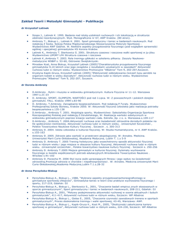 Zakład Teorii i Metodyki Gimnastyki - Publikacje