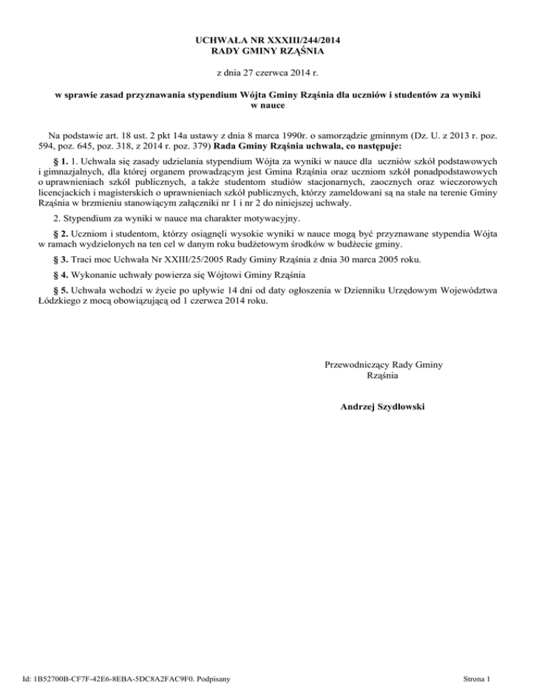 §4. Określa się wzór wniosku o przyznanie stypendium Wójta Gminy Rząśnia.