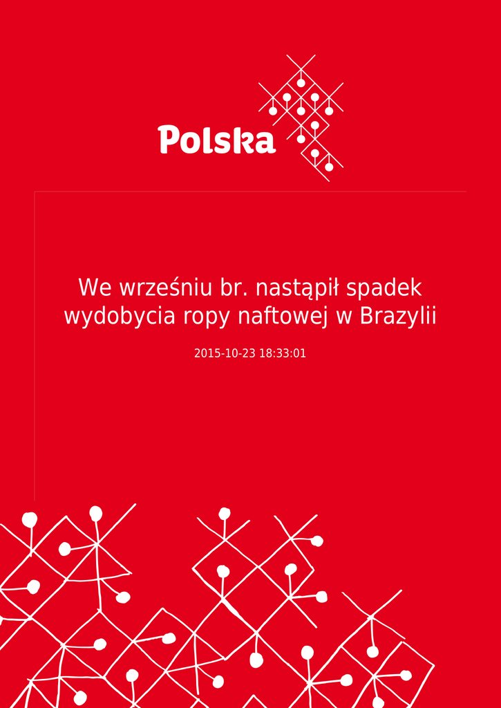 We wrześniu br. nastąpił spadek wydobycia ropy naftowej w Brazylii 2015-10-23 18:33:01 2 Petrobras poinformował, że przyczyna spadku wydobycia były przestoje spowodowane okresowymi przeglądami platform wiertniczych. We wrześniu br. nastąpił spadek wydobycia ropy naftowej w Brazylii Petrobras poinformował, że przyczyna spadku wydobycia były przestoje spowodowane okresowymi przeglądami platform wiertniczych. Pomimo spadku wydobycia we wrześniu br. w okresie ostatnich 9 miesięcy br. nastąpił wzrost wydobycia – 4,5% w stosunku do analogicznego okresy roku ubiegłego. Wydobycie ropy naftowej we wrześniu br. wyniosło 2,132 mln baryłek dziennie i było wyższe od planowanego 2.125 mln. Wydobycie ropy i gazu w złożach pre-sal wyniosło 1,028 mln baryłek dziennie. Są to złoża położone 7 tys. metrów pod poziomem morza. Rekord wydobycia padł w dniu 15 września br. – 1,12 mln baryłek, wydobycie ze złóż pre-sal wyniosło 901 mln baryłek. Średnia wydobycia ropy naftowej i gazy we wrześniu br. ze złóż w Brazylii oraz w innych krajach operowanych przez Petrobras wyniosła 2,72 mln baryłek. Rekordowy poziom wydobycia ropy i gazu został padł w sierpniu 2015 roku – 2,72 mln baryłek. Źródło: http://g1.globo.com/economia/negocios/noticia/2015/10/producao-de-petroleo-da-petrobras-no-brasil-em-setemb ro-cai-67-20151016201005445520.html 3