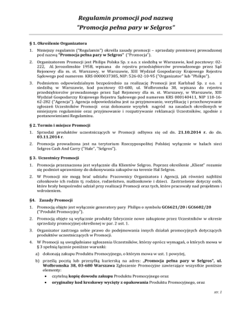 http://www.philips.pl/promocje i stanowi załącznik nr 1 do niniejszego Regulaminu. Treść