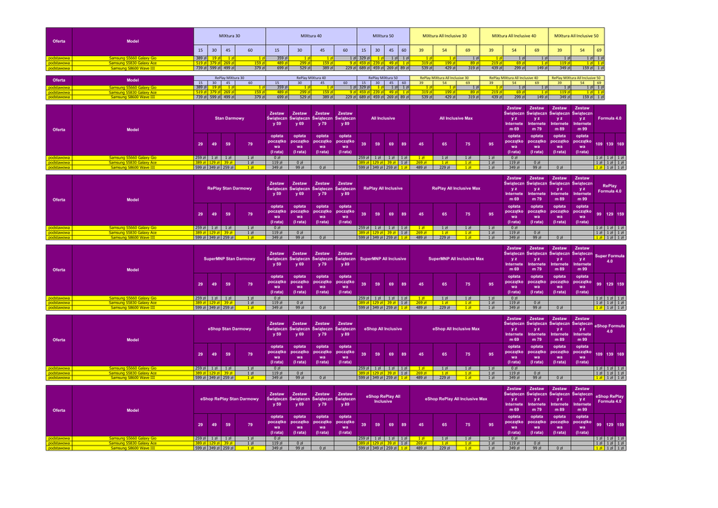 MIXtura 30 Oferta Model podstawowa podstawowa podstawowa Samsung S5660 Galaxy Gio Samsung S5830 Galaxy Ace Samsung S8600 Wave III 15 Oferta Model podstawowa podstawowa podstawowa Samsung S5660 Galaxy Gio Samsung S5830 Galaxy Ace Samsung S8600 Wave III 30 45 MIXtura 40 60 389 zł 19 zł 1 zł 519 zł 379 zł 269 zł 739 zł 599 zł 499 zł RePlay MIXtura 30 15 30 45 389 zł 19 zł 1 zł 519 zł 379 zł 269 zł 739 zł 599 zł 499 zł 15 1 zł 159 zł 379 zł 359 zł 489 zł 699 zł 1 zł 159 zł 379 zł 15 359 zł 489 zł 699 zł 60 Samsung S5660 Galaxy Gio Samsung S5830 Galaxy Ace Samsung S8600 Wave III 49 59 259 zł 1 zł 1 zł 389 zł 129 zł 39 zł 599 zł 349 zł 259 zł opłata początko wa (I rata) opłata początko wa (I rata) opłata początko wa (I rata) 1 zł 1 zł 1 zł 0 zł 119 zł 349 zł 0 zł 99 zł 0 zł Samsung S5660 Galaxy Gio Samsung S5830 Galaxy Ace Samsung S8600 Wave III 49 59 259 zł 1 zł 1 zł 389 zł 129 zł 39 zł 599 zł 349 zł 259 zł opłata początko wa (I rata) opłata początko wa (I rata) opłata początko wa (I rata) 1 zł 1 zł 1 zł 0 zł 119 zł 349 zł 0 zł 99 zł 0 zł Samsung S5660 Galaxy Gio Samsung S5830 Galaxy Ace Samsung S8600 Wave III 49 59 259 zł 1 zł 1 zł 389 zł 129 zł 39 zł 599 zł 349 zł 259 zł Samsung S5660 Galaxy Gio Samsung S5830 Galaxy Ace Samsung S8600 Wave III 49 59 259 zł 1 zł 1 zł 389 zł 129 zł 39 zł 599 zł 349 zł 259 zł 39 54 1 zł 319 zł 539 zł 1 zł 199 zł 429 zł 69 1 zł 89 zł 319 zł RePlay MIXtura All Inclusive 30 39 54 69 1 zł 1 zł 1 zł 319 zł 199 zł 89 zł 539 zł 429 zł 319 zł All Inclusive 39 1 zł 219 zł 439 zł opłata początko wa (I rata) 39 59 69 259 zł 1 zł 1 zł 389 zł 129 zł 39 zł 599 zł 349 zł 259 zł opłata początko wa (I rata) 59 69 259 zł 1 zł 1 zł 389 zł 129 zł 39 zł 599 zł 349 zł 259 zł 1 zł 1 zł 1 zł 0 zł 119 zł 349 zł 0 zł 99 zł 0 zł opłata początko wa (I rata) 59 69 259 zł 1 zł 1 zł 389 zł 129 zł 39 zł 599 zł 349 zł 259 zł Zestaw Zestaw Zestaw Zestaw Świąteczn Świąteczn Świąteczn Świąteczn y 59 y 69 y 79 y 89 Samsung S5660 Galaxy Gio Samsung S5830 Galaxy Ace Samsung S8600 Wave III 49 59 259 zł 1 zł 1 zł 389 zł 129 zł 39 zł 599 zł 349 zł 259 zł 79 opłata początko wa (I rata) opłata początko wa (I rata) opłata początko wa (I rata) 1 zł 1 zł 1 zł 0 zł 119 zł 349 zł 0 zł 99 zł 0 zł opłata początko wa (I rata) 1 zł 269 zł 489 zł 1 zł 1 zł 229 zł 1 zł 1 zł 1 zł 1 zł 1 zł 1 zł 0 zł 119 zł 349 zł 0 zł 99 zł 0 zł 1 zł 1 zł 1 zł Zestaw Zestaw Zestaw Zestaw Świąteczn Świąteczn Świąteczn Świąteczn yz yz yz yz Internete Internete Internete Internete m 69 m 79 m 89 m 99 RePlay All Inclusive Max 89 45 65 75 95 opłata początko wa (I rata) opłata początko wa (I rata) opłata początko wa (I rata) 1 zł 1 zł 1 zł 1 zł 269 zł 489 zł 1 zł 1 zł 229 zł 1 zł 1 zł 1 zł 1 zł 1 zł 1 zł 0 zł 119 zł 349 zł 0 zł 99 zł 0 zł 59 69 259 zł 1 zł 1 zł 389 zł 129 zł 39 zł 599 zł 349 zł 259 zł opłata początko wa (I rata) 1 zł 1 zł 1 zł 1 zł 1 zł 1 zł RePlay Formuła 4.0 99 129 159 1 zł 1 zł 1 zł 1 zł 1 zł 1 zł 1 zł 1 zł 1 zł Zestaw Zestaw Zestaw Zestaw Świąteczn Świąteczn Świąteczn Świąteczn Super Formuła yz yz yz yz 4.0 Internete Internete Internete Internete m 69 m 79 m 89 m 99 SuperMNP All Inclusive Max 89 45 65 75 95 opłata początko wa (I rata) opłata początko wa (I rata) opłata początko wa (I rata) 1 zł 1 zł 1 zł 1 zł 269 zł 489 zł 1 zł 1 zł 229 zł 1 zł 1 zł 1 zł 1 zł 1 zł 1 zł 0 zł 119 zł 349 zł 0 zł 99 zł 0 zł opłata początko wa (I rata) 99 129 159 1 zł 1 zł 1 zł 1 zł 1 zł 1 zł 1 zł 1 zł 1 zł Zestaw Zestaw Zestaw Zestaw Świąteczn Świąteczn Świąteczn Świąteczn eShop Formuła yz yz yz yz 4.0 Internete Internete Internete Internete m 69 m 79 m 89 m 99 eShop All Inclusive Max 89 45 65 75 95 opłata początko wa (I rata) opłata początko wa (I rata) opłata początko wa (I rata) opłata początko 109 139 169 wa (I rata) 1 zł 1 zł 1 zł 1 zł 269 zł 489 zł 1 zł 1 zł 229 zł 1 zł 1 zł 1 zł 1 zł 1 zł 1 zł 0 zł 119 zł 349 zł 0 zł 99 zł 0 zł 1 zł 1 zł 1 zł eShop RePlay All Inclusive 39 Formuła 4.0 1 zł 1 zł 1 zł eShop All Inclusive 39 RePlay MIXtura AIl Inclusive 50 39 54 69 1 zł 1 zł 1 zł 119 zł 1 zł 1 zł 349 zł 159 zł 1 zł opłata początko 109 139 169 wa (I rata) 0 zł opłata początko wa (I rata) 1 zł 1 zł 1 zł opłata początko wa (I rata) 0 zł 99 zł opłata początko wa (I rata) 69 opłata początko wa (I rata) 0 zł 119 zł 349 zł opłata początko wa (I rata) 1 zł 1 zł 159 zł opłata początko wa (I rata) 1 zł 1 zł 1 zł 79 54 95 39 Zestaw Zestaw Zestaw Zestaw Świąteczn Świąteczn Świąteczn Świąteczn y 59 y 69 y 79 y 89 1 zł 119 zł 349 zł 75 opłata początko wa (I rata) 259 zł 1 zł 1 zł 389 zł 129 zł 39 zł 599 zł 349 zł 259 zł 39 65 opłata początko wa (I rata) 69 1 zł 1 zł 149 zł 45 opłata początko wa (I rata) 59 69 89 79 opłata początko wa (I rata) 1 zł 69 zł 299 zł Zestaw Zestaw Zestaw Zestaw Świąteczn Świąteczn Świąteczn Świąteczn yz yz yz yz Internete Internete Internete Internete m 69 m 79 m 89 m 99 All Inclusive Max RePlay All Inclusive 39 54 MIXtura AIl Inclusive 50 RePlay MIXtura All Inclusive 40 39 54 69 1 zł 1 zł 1 zł 219 zł 69 zł 1 zł 439 zł 299 zł 149 zł 1 zł 1 zł 1 zł 1 zł 1 zł 1 zł Zestaw Zestaw Zestaw Zestaw Świąteczn Świąteczn Świąteczn Świąteczn eShop RePlay yz yz yz yz Formuła 4.0 Internete Internete Internete Internete m 69 m 79 m 89 m 99 eShop RePlay All Inclusive Max Model 29 podstawowa podstawowa podstawowa RePlay MIXtura 50 15 30 45 60 1 zł 329 zł 1 zł 1 zł 1 zł 9 zł 459 zł 239 zł 49 zł 1 zł 229 zł 689 zł 459 zł 269 zł 89 zł 60 SuperMNP All Inclusive eShop RePlay Stan Darmowy Oferta 60 Model 29 podstawowa podstawowa podstawowa 45 Zestaw Zestaw Zestaw Zesta