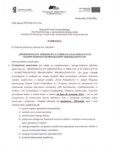 Srodk6w Unii Europejskiej w ramach Europejskiego Funduszu Spolecznego.Szkolenie