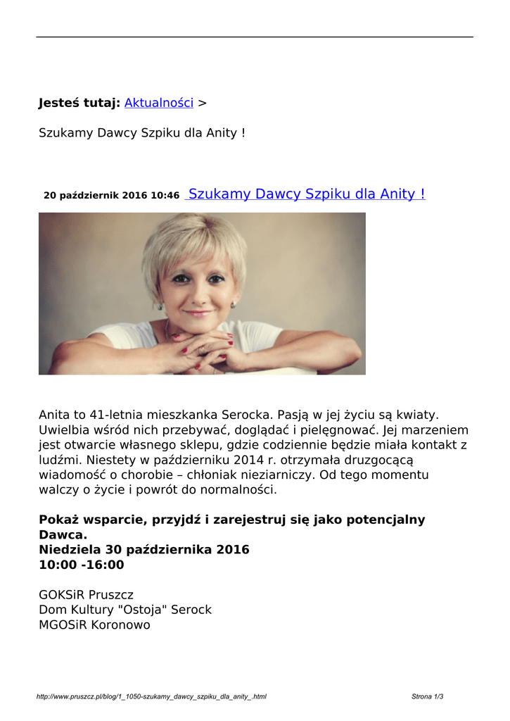 20 październik 2016 10:46 Szukamy Dawcy Szpiku dla Anity !