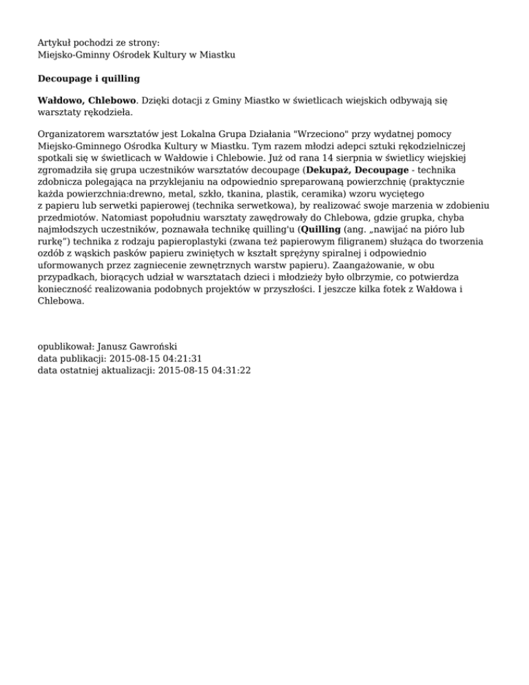 Miejsko-Gminny Ośrodek Kultury w Miastku Decoupage i quilling