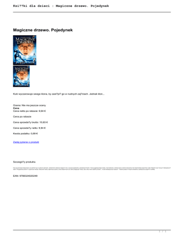 Ksi??ki dla dzieci : Magiczne drzewo. Pojedynek Magiczne drzewo. Pojedynek Kuki wyczarowuje swego klona, by zast?pi? go w nudnych zaj?ciach. Jednak klon... Ocena: Nie ma jeszcze oceny Cena Cena netto po rabacie: 9,94 € Cena po rabacie Cena sprzeda?y brutto: 10,83 € Cena sprzeda?y netto: 9,94 € Kwota podatku: 0,89 € Zadaj pytanie o produkt Szczegó?y produktu Kuki wyczarowuje swego klona, by zast?pi? go w nudnych zaj?ciach. Jednak klon zdobywa magiczn? moc i zaczyna pojedynek z prawdziwym Kukim. Tworzy gigantycznego robota, ?ywe labirynty i zmienia ludzi w dziwne stworzenia. Na niesamowitej wyspie Kuki, Gabi i Blubek musz? stoczy? niebezpieczn? walk?. Przygodowa powie?? o ogromnym tempie. Olbrzymie roboty, tajemnicze szachy, armia drapie?nych ryb, które przegryzaj? mosty i pies, który mówi ludzkim g?osem... A obok fantastycznych zdarze? - ?wietne postaci m?odych bohaterów, autentyczne przyja?ni i konflikty. EAN: 9788324020249 1 / 1 Powered by TCPDF (www.tcpdf.org)