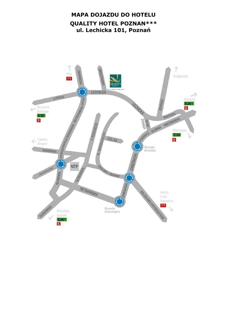 MAPA DOJAZDU DO HOTELU QUALITY HOTEL POZNAN*** ul. Lechicka 101, Poznań