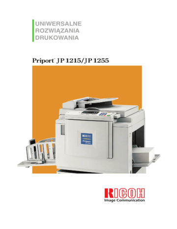UNIWERSALNE ROZWI¥ZANIA DRUKOWANIA Potêga ukryta w ma³ej obudowie Powielacz cyfrowy Ricoh Priport JP1215/1255 posiada mo¿liwoci wykonania najwiêkszych nak³adów druku w krótkim czasie. Poprawiona jakoæ obrazu, jeszcze wiêksza ekonomika u¿ytkowania i ³atwoæ obs³ugi oraz mo¿liwoæ instalacji wewnêtrznego kontrolera wydruków pozwalaj¹ osi¹gn¹æ optymaln¹ produktywnoæ w minimalnym czasie. Ruchomy skaner z szyb¹ ekspozycyjn¹ zapewnia kopiowanie z szerokiej gamy orygina³ów, a tryb ³¹czenia dwóch orygina³ów po³¹czony z funkcj¹ obrotu obrazu redukuje do minimum mo¿liwoæ pomy³ki w dopasowaniu orientacji orygina³u i papieru. Przyjazna u¿ytkownikowi procedura wymiany bêbna farbowego pozwala na ³atw¹ zmianê koloru w jakim chcemy drukowaæ. Podsumowuj¹c: Ricoh Priport JP1215/1255 jest urz¹dzeniem przeznaczonym do wykonywania prac wysokonak³adowych w minimalnym czasie i znikomym kosztem. Wysoka jakoæ i uniwersalne funkcje A B A + B Funkcje ³¹czenia i obrotu obrazu pozwalaj¹ ³¹czyæ dwa u¿ytki na jednej kartce. Wy¿sza rozdzielczoæ skanowania i druku U¿ywaj¹c trybu Fine podnosimy rozdzielczoæ druku w kierunku pionowym do 400 dpi, co sprawia, ¿e szczególnie ma³e przedmioty s¹ odwzorowane wyraniej. Jest to idealne rozwi¹zanie dla druku obrazów z powiêkszeniem, cienkich linii i ma³ych, niewyranych tekstów. Tekst czy fotografia? - nie ma problemu Tint mode Original Zmieniaj¹c intensywnoæ wydruku w trybie t³a mo¿emy tworzyæ efekt bardzo jasnego pod³o¿a, na które nak³adamy tekst. Wykorzystuj¹c tryb tekstowo / fotograficzny Priport JP 1215/1255 automatycznie separuje zdjêcia od tekstu podczas skanowania i optymalizuje ustawienia dla poszczególnych czêci skanowanego orygina³u. W rezultacie otrzymujemy najlepszej jakoci wydruk bez u¿ywania specjalnych edytorów, co sprawdza siê przy produkcji ulotek reklamowych czy broszur. Wspó³czynniki powiêkszania i redukcji Dla zapewnienia uniwersalnoci zastosowañ i zwiêkszenia produktywnoci istnieje mo¿liwoæ wyboru skali sporód trzech wspó³czynników powiêkszenia i czterech wspó³czynników redukcji. £¹czenie dwóch orygina³ów na jednym wydruku z jednoczesnym obrotem obrazu W urz¹dzeniu Priport JP1215/1255 zastosowano technologiê obróbki skanowanego pliku, która pozwala na obrót obrazu o 90 stopni. Dziêki temu mo¿liwe jest ³¹czenie dwóch orygina³ów (maksymalnie formatu B4) i wydruk ich obok siebie na kartce A4 lub B4. Profesjonalna jakoæ wydruku Zastosowanie zaawansowanej technologii "g³êbi obrazu" eliminuje cienie pojawiaj¹ce siê na krawêdziach kopiowanego dokumentu, co poszerza gamê mo¿liwych do skopiowania orygina³ów. Jest to cecha szczególnie pomocna przy kopiowaniu "podklejanych" druków lub ksi¹¿ek, gdzie rodek niedok³adnie przylega do szyby ekspozycyjnej. Tryb t³a (Tint) Funkcja ta umo¿liwia wydruk wybranego orygina³u w formie bardzo jasnego obrazu, mog¹cego stanowiæ t³o dla tekstu nadrukowanego póniej. Tego typu dokumenty posiadaj¹ atrakcyjny wygl¹d, szczególnie w przypadku przygotowywania prezentacji, folderów reklamowych czy nawet papierów firmowych. Tryb ekonomiczny Stosowany w powielaczach Ricoh tryb ekonomiczny redukuje zu¿ycie farby o oko³o 15%, czyni¹c z Priporta JP1215/1255 urz¹dzenie jeszcze tañsze w eksploatacji. Tryb omijania podawania U¿ywaj¹c tej funkcji eliminujemy mo¿liwoæ brudzenia spodu nastêpnej kartki, spadaj¹cej na tacê odbierania papieru, gdy stosujemy papiery o s³abych w³aciwociach absorpcyjnych. Mo¿emy regulowaæ iloæ obrotów bêbna na jeden arkusz. Tryb zabezpieczenia Funkcja ta stosowana w powielaczach Ricoh uniemo¿liwia wykonanie wydruków z matrycy nawiniêtej na bêbnie farbowym. Bêben zostaje zablokowany, przez co nie mo¿na go wyj¹æ z maszyny, ani podejrzeæ obrazu wypalonego na matrycy. Nie ma potrzeby niszczenia matrycy, aby zabezpieczyæ obraz przed wgl¹dem przez osoby niepowo³ane. Kody u¿ytkownika Za pomoc¹ kodów u¿ytkownika mo¿emy monitorowaæ iloæ wydruków i matryc jakie s¹ wykonane, dla ka¿dego kodu niezale¿nie (maksymalnie 20 kodów). Zabezpiecza to Priporta przed u¿yciem do celów nie zwi¹zanych z prac¹. Opcje pomocne w zaawansowanym procesie powielania Kontroler wydruków Opcjonalny ADF pozwala zautomatyzowaæ proces podawania orygina³ów. Urz¹dzenia Priport JP1215/1255 mog¹ byæ wyposa¿one w zewnêtrzny lub wewnêtrzny kontroler wydruków. Dziêki zastosowaniu kontrolera instalowanego wewn¹trz powielacza uzyskujemy wygodê obs³ugi, wiêksz¹ produktywnoæ i kontrolê nad przep³ywem danych. Nie musimy pamiêtaæ o kolejnoci w³¹czania poszczególnych elementów. Ponadto zastosowanie kontrolera wydruków daje mo¿liwoæ nak³adania obrazów: z szyby ekspozycyjnej (b¹d ADF) i tego, tworzonego w komputerze i wypalenie ich na jednej matrycy. Wydruki z urz¹dzenia Priport JP1215/1255 s¹ czytelne i ostre. Automatyczny Podajnik Dokumentów (ADF) Podajnik dokumentów zastosowany w JP 1215/1255 pozwala na podawanie i skanowanie orygina³ów w postaci kartek, w sposób automatyczny. W takim przypadku oszczêdzamy czas i zwiêkszamy produktywnoæ urz¹dzenia. Farba we wszystkich kolorach têczy Stosowanie farb w innym kolorze ni¿ czarny pozwala osi¹gn¹æ bardziej atrakcyjny dla oka wygl¹d dokumentu. Zamiana kolorów odbywa siê poprzez wymianê bêbnów kolorowych, jest ³atwa i zajmuje zaledwie kilka sekund. Oprócz standardowej palety barw oferowanej przez Ricoh, klient w razie potrzeby mo¿e zamówiæ dowolny kolor z wzorca Pantone, specjalnie tworzony dla naszych powielaczy. Taka operacja charakteryzuje siê krótkim czasem realizacji, przystêpn¹ cen¹ i ma³¹, minimaln¹ iloci¹ zamawianych pojemników. Red Blue Green Brown Black Yellow Navy Purple Maroon Orange Teal Stosowanie farb w innym kolorze ni¿ czarny pozwala osi¹gn¹æ bardziej atrakcyjny dla oka wygl¹d dokumentu. Wewnêtrzny kontroler wydruków poprawia funkcjonalnoæ i obieg dokument