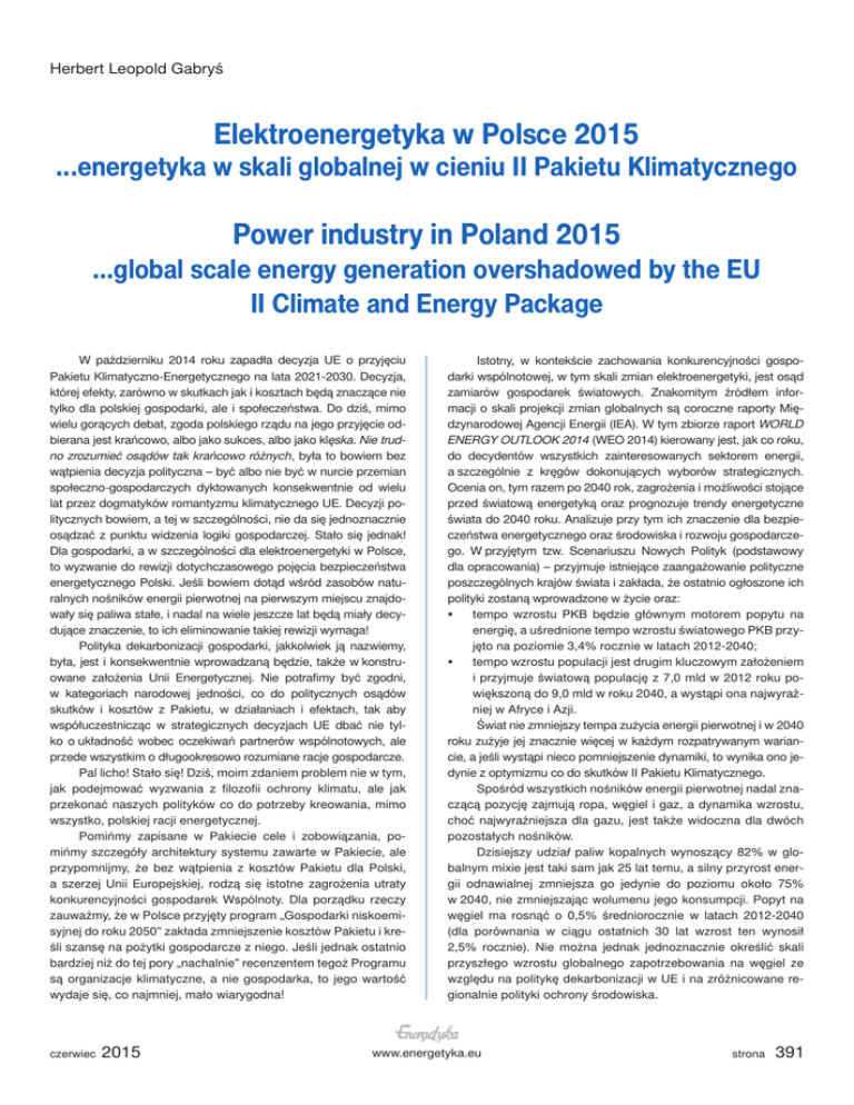 Elektroenergetyka w Polsce 2015 ...energetyka w skali globalnej w