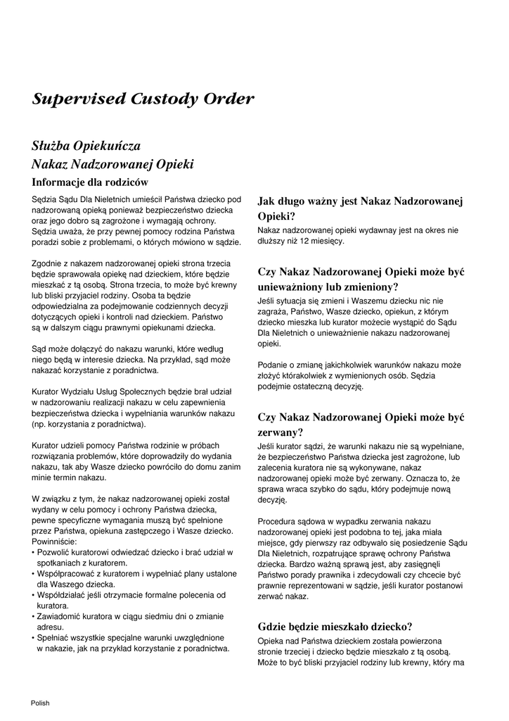 Polish - Supervised Custody Order, Information for Parents